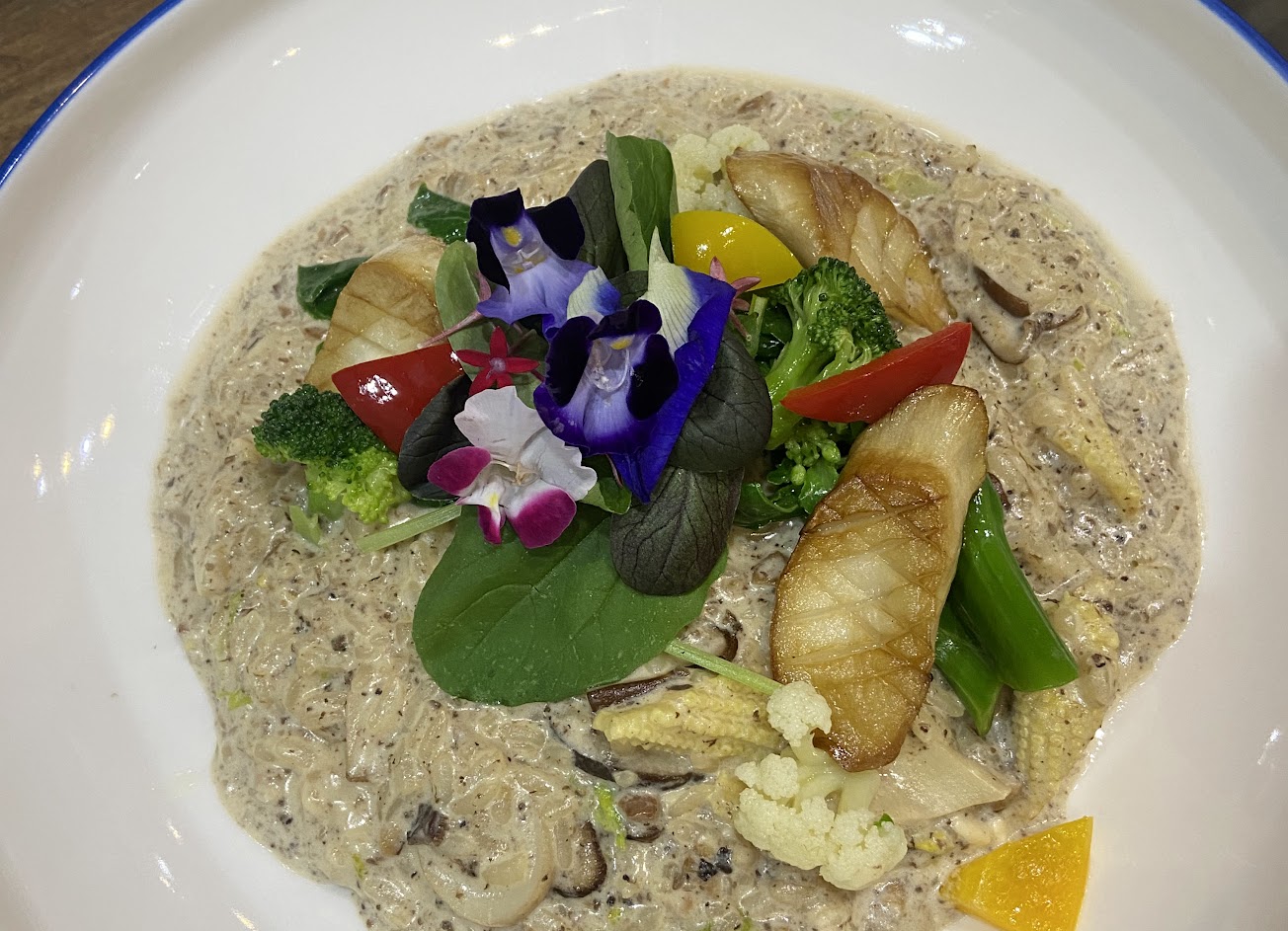 法國頂級牛肝菌松露 燉飯 裝飾的花吃起來跟草的味道一樣 燉飯本身奶味蠻重的 吃起來算天然