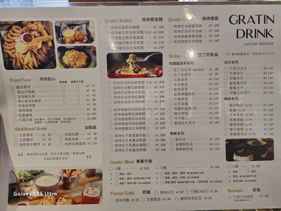 飲料份量很大,打卡滿顆星送奶酪。點了蝦麵,但是很少吃的義大利麵的蝦子並不是撥好的,吃白醬還要撥蝦會弄到滿手都是,桌面噴的都是滿不方便的! 服務 內用 餐點類型 晚餐