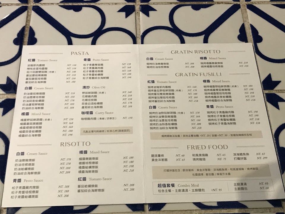 個人特別喜歡充滿奶香的義大利麵,平價且又好吃,餐點會附一杯紅/綠茶(紅茶甜度固定的,但綠茶可以做調整)。