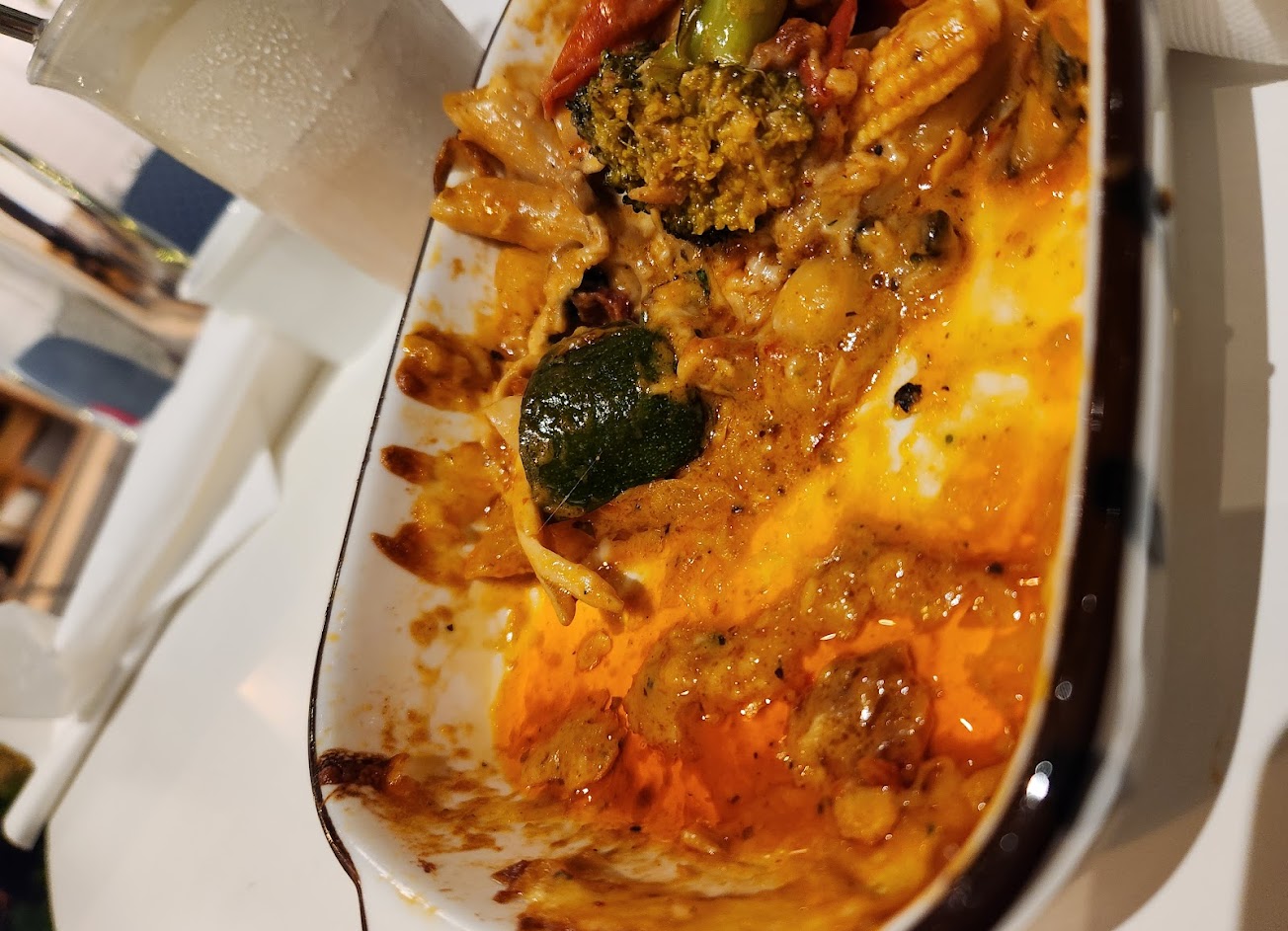東西真的很好吃,尤其是pizza很驚艷,義大利麵跟焗烤也都水準之上,只是不吃五辛結果焗烤送來的有五辛,吃下去才知道想說應該點錯又看他們很忙就沒去反應畢竟都吃了,結果員工後來有來道歉是順序出錯並補上無五辛的雖然我已快吃飽了。