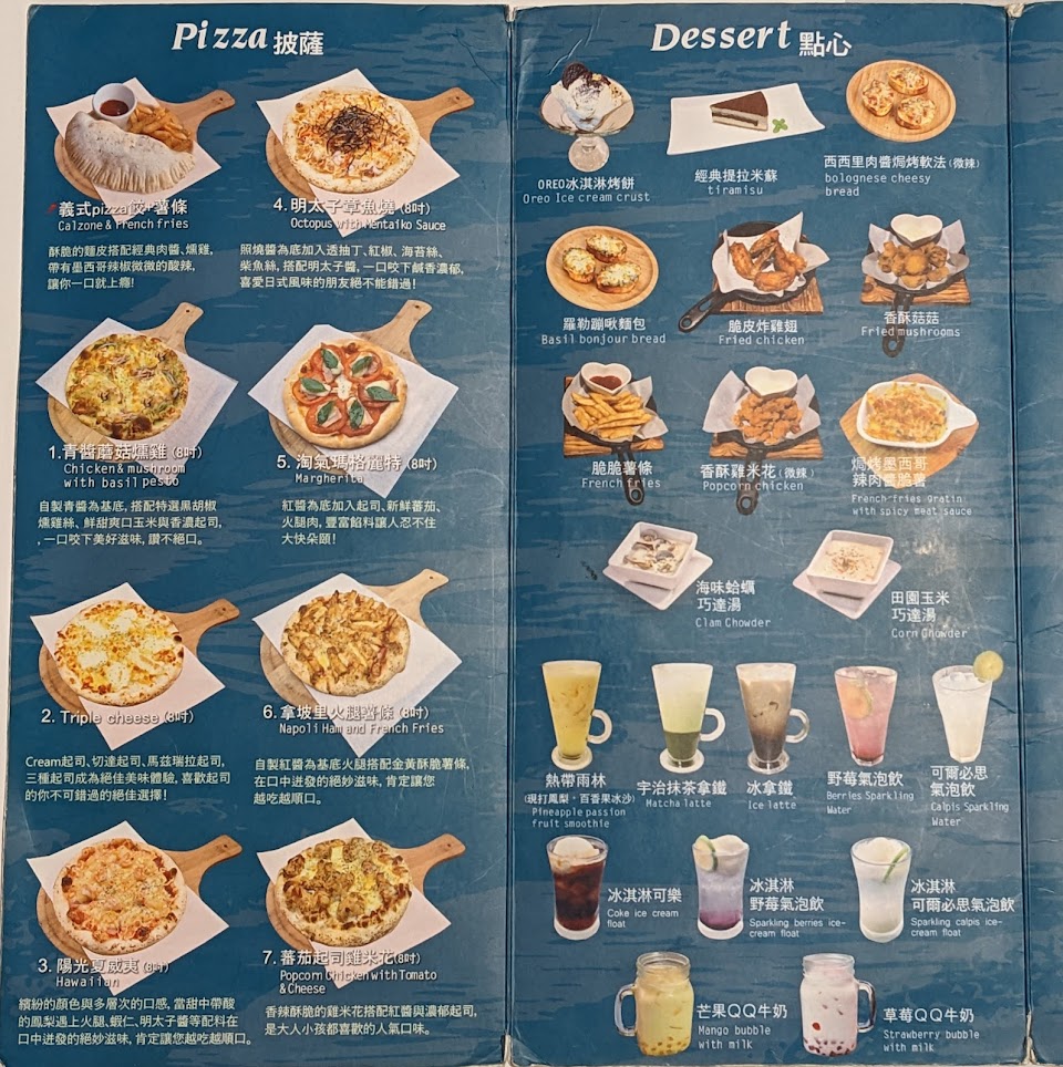 吃了快一小時… 飯跟麵兩份主餐都吃完了 披薩都還沒來 隔壁的人都走了 新的顧客他們點披薩也來了 我們都等到吃飽了想要詢問取消時 店員竟然支支吾吾才說要做了 說做十幾分鐘就好 可是我們已經等4,50分鐘了 又跟我們說炸物要比較久 那請問隔壁新的一桌薯條炸雞馬上就能上是(? 餐點也偏小份 吃完回家有點拉肚子 不推薦 餐點普普 服務也普普