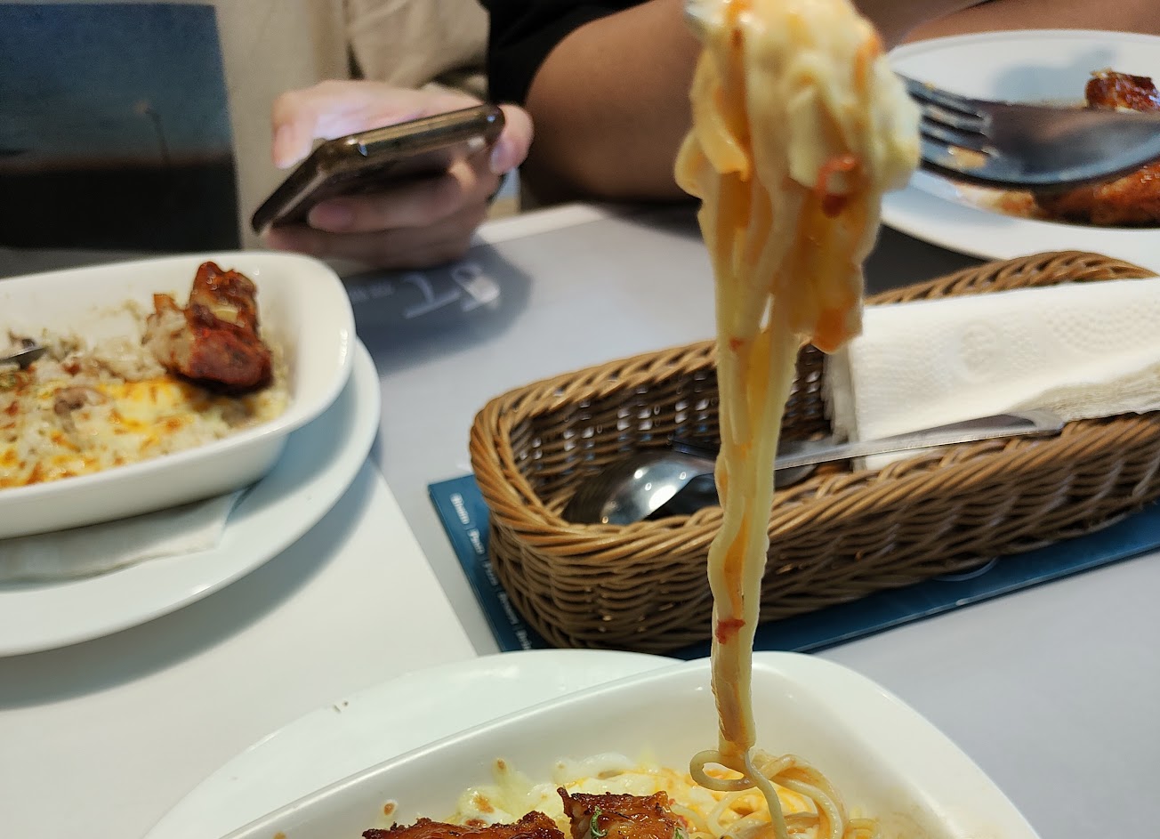店內氣氛良好,餐點製作快速,義大利麵醬汁剛好不多也不少,麵條軟硬適中,可惜炸物的凱薩醬和披薩我吃過更好吃的