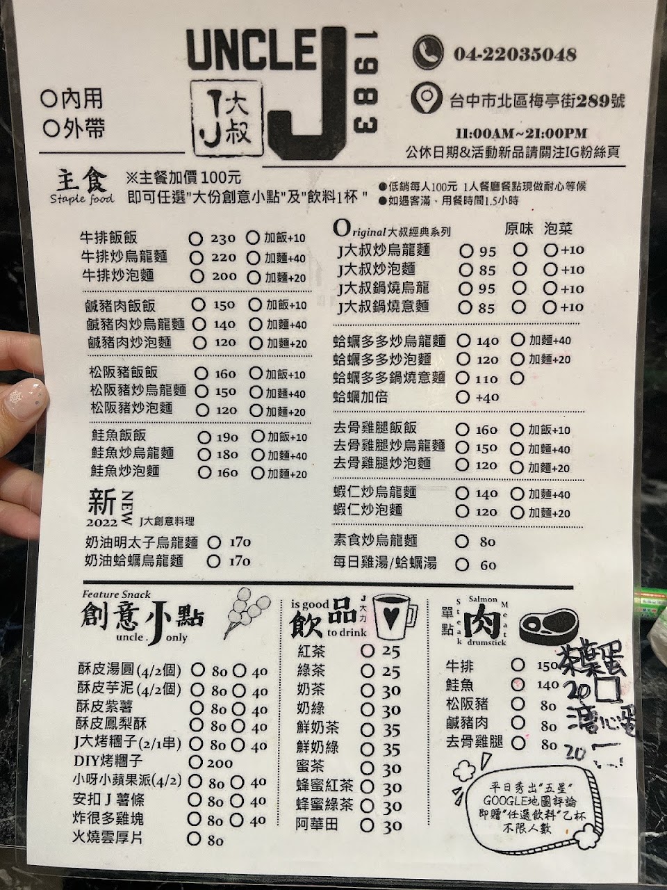 2024最新在地推薦餐廳的菜單_Uncle J 1983 J大叔的菜單、圖片