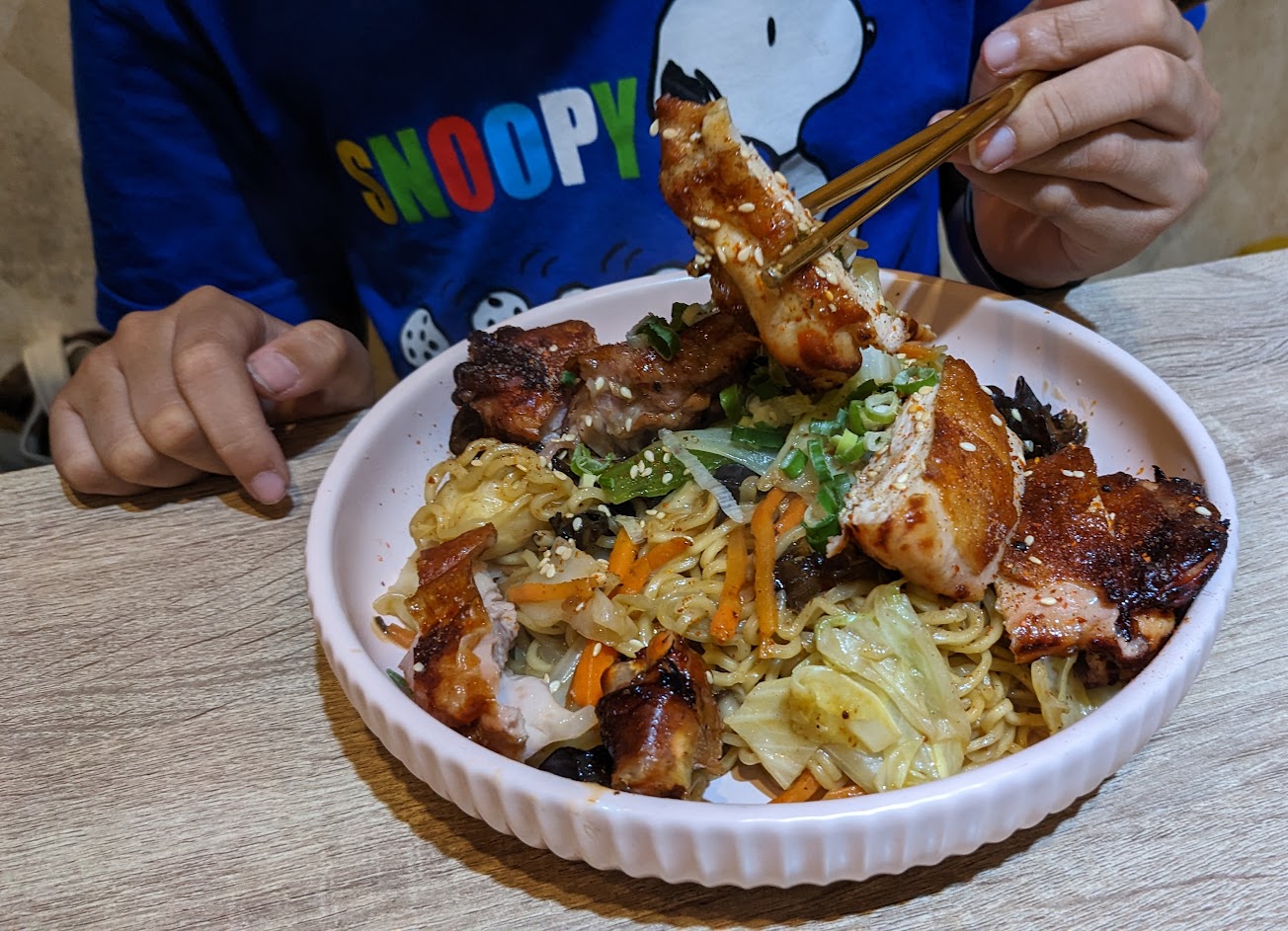 鮭魚炒泡麵, 去骨雞腿炒泡麵, j 大烤糰子