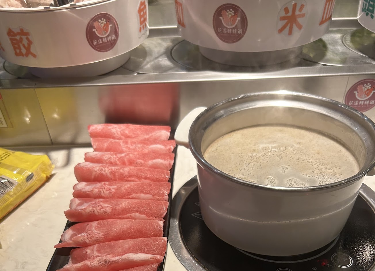 1.樣式太少太單一,補食品的速度也偏慢,飯很小鍋,但等了一陣子才補,鑫鑫腸可能是賣完了(?,從進去後就只看到一條後就沒補了。 2.店不大桌位有點擁擠,沒辦法看著手機影片吃飯,左右緊鄰旁人,是吃過目前最擠的店之一。 3.火鍋的電磁爐如果碰水會當機,店員稱作「爆鍋」,雖然稱不上多危險,但真的是第一次吃火鍋遇到會有這種問題的,但他的電磁爐是嵌在桌子的,想必這個問題是沒辦法解決。 4.我們是吃2000的,在2045的時候就來確認有沒有要再補肉,說廚房要關了,然後旋轉盤的火鍋料都收掉,雖然也差不多飽了,但吃得有壓力,明明營業時間到2200,感覺像是2100。 5.肉質很普,肉很冰,豬肉很柴,但這個價位這個不扣分。
