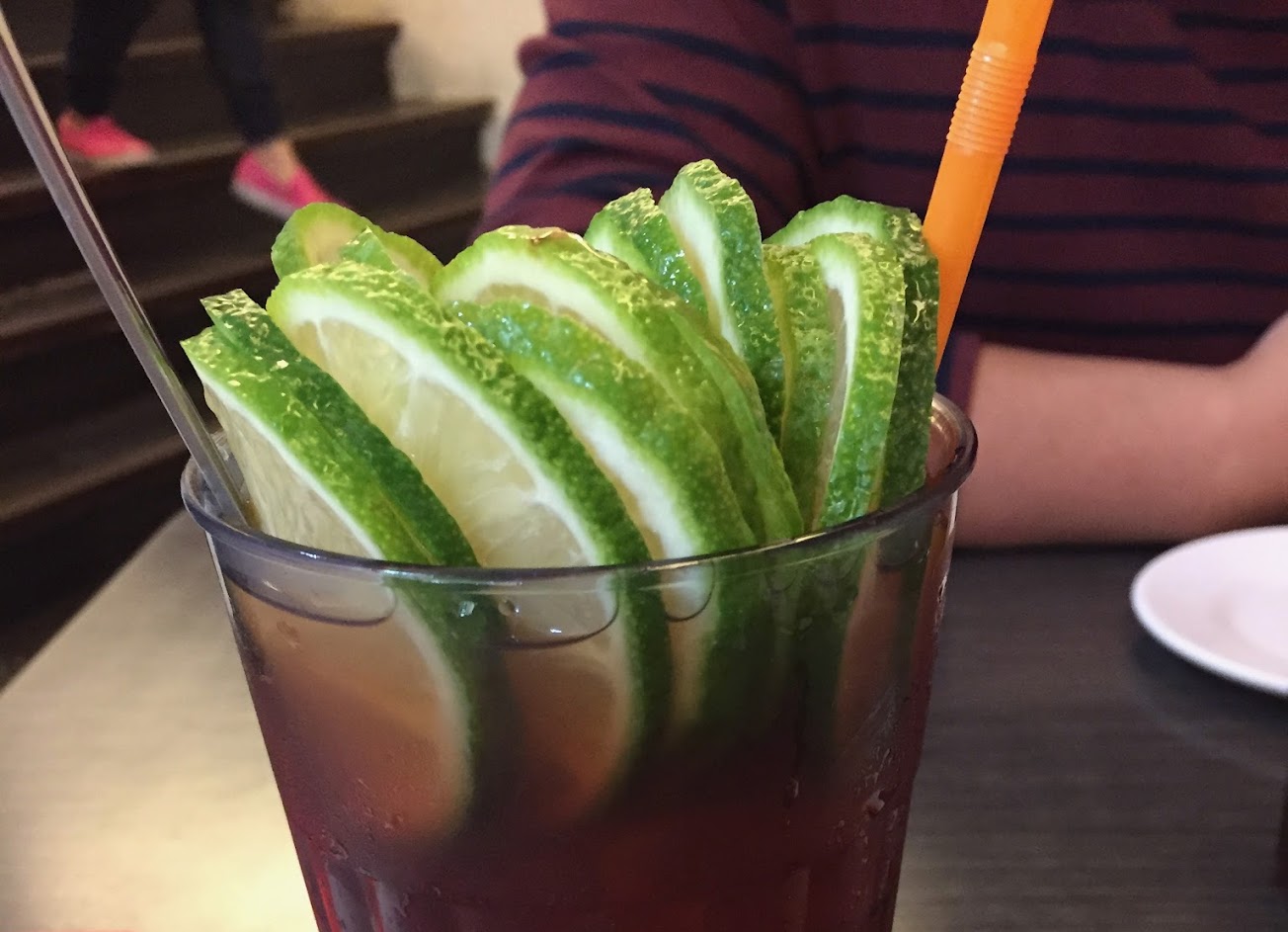 凍檸茶杯口塞有滿滿一整顆的檸檬切片,乍看非常有誠意,但過多的檸檬片導致稍微下壓紅茶就會流到杯外,必須先喝掉四分之一的紅茶,才能開始將檸檬跟茶混合。未混合檸檬前的茶過甜,且似類似冬瓜茶的口味,沒有一般港式傳統的茶香氣。