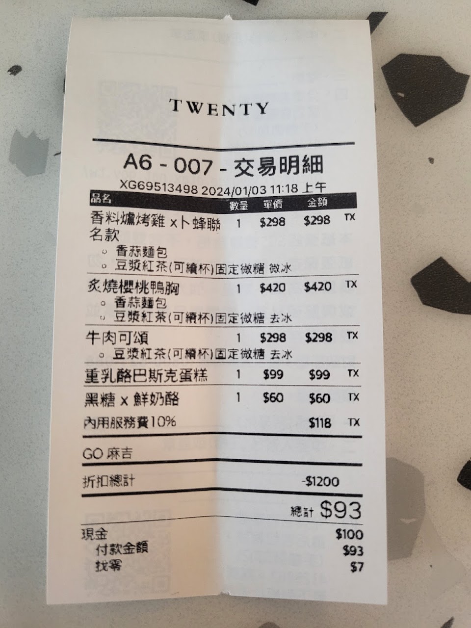 週末假日來到這家店,2點多店裡環境清幽,香料爐烤雞好吃,份量中等,適合多吃點心,點紅茶可續杯,肉少但好吃,生菜很新鮮,有10%服務費,內用桌不多,位子含吧台大概16位,平日可能需要訂位,附近停車位不多,需要找一下。