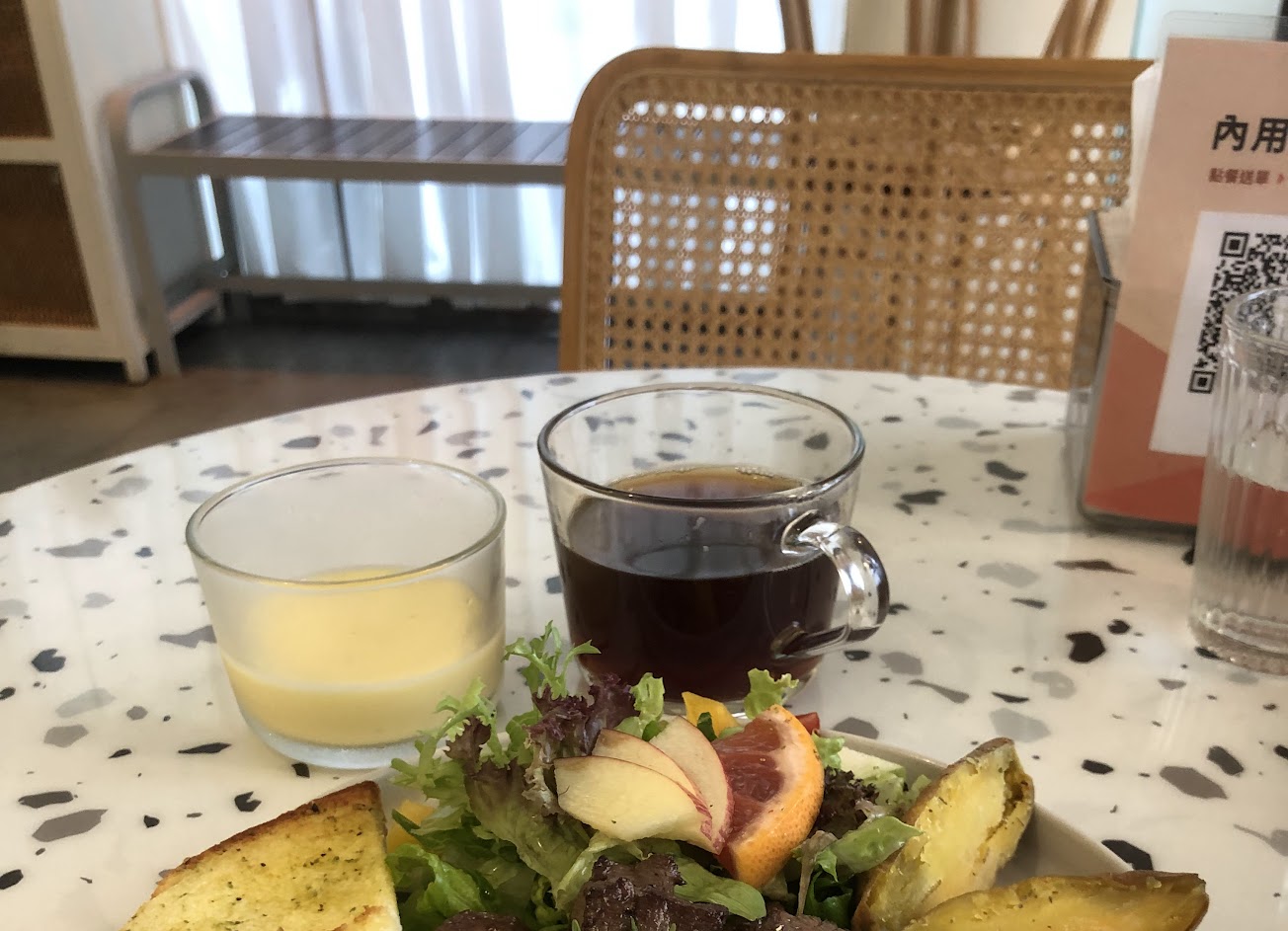 點了煎雞腿早午餐,含服務費10%一個人328。餐點生菜量太少,紅茶與豆漿不可調甜度,相對甜。CP值不高。