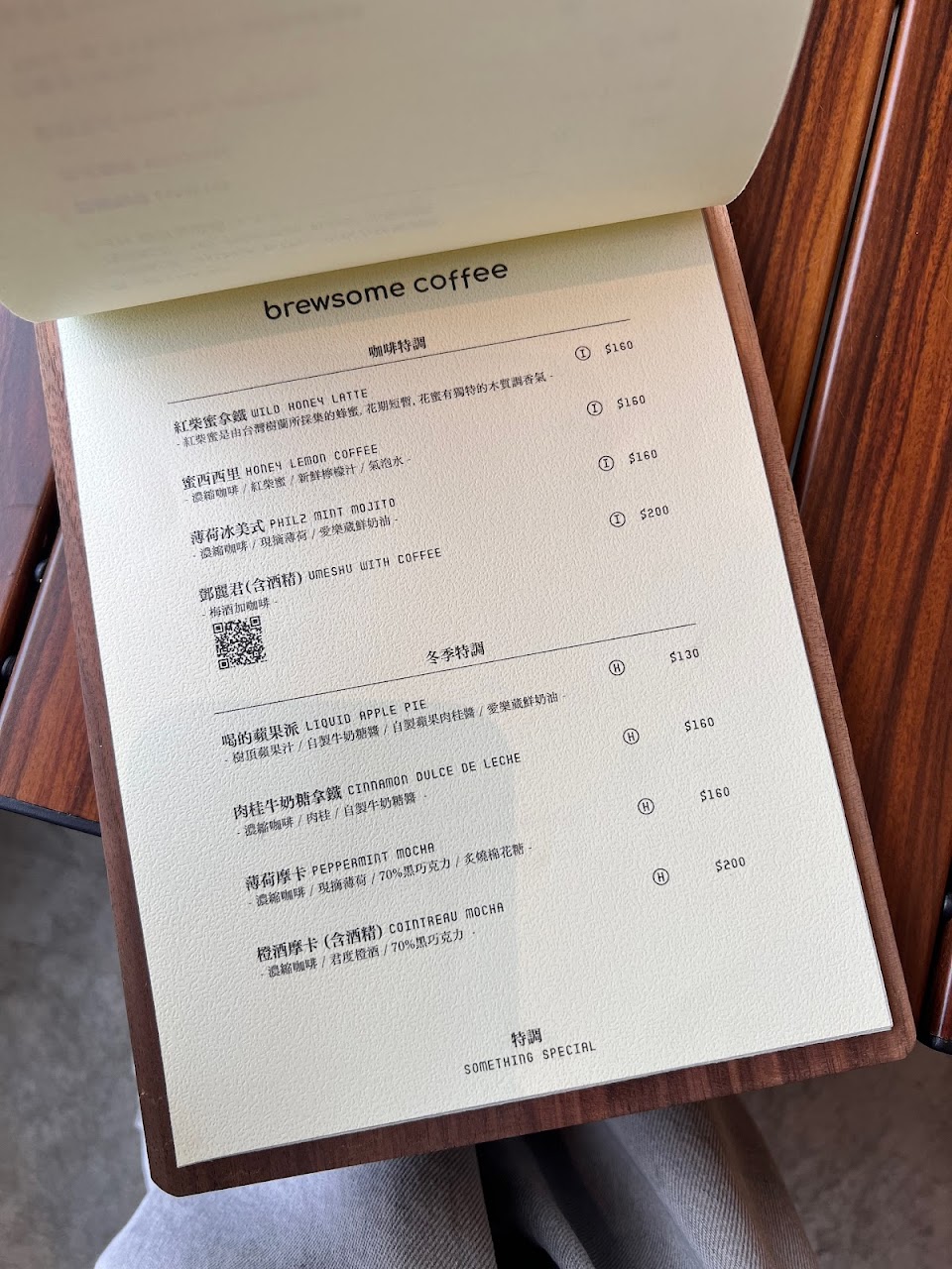 Brewsome Coffeeㄅㄨˇ ㄌㄨ ㄙㄤ☕️ 台中自家烘焙咖啡店,一店大墩店到只營業到10/10,梅亭店是二店,餐點是輕食類~甜食、鹹食都有,單品手沖、義式咖啡等飲品。 內用低消一人一杯飲品,菜單掃描QR碼,還有食物圖片可以參考滿貼心的?? ▪️抹茶拿鐵 $150 ▪️拿鐵 $ 150 有中培跟淺培可以選,我選了中培,很好喝? ▪️侏儸紀火山APPLE PIE $230 慢火熬煮的肉桂蘋果內餡、布里起司、發酵奶油派皮、牛奶冰淇淋,這道雖然覺得有點貴,但我們都覺得很驚艷耶? 其實我不愛肉桂跟蘋果,但搭配起來好好吃~熱熱冰冰,蘋果軟軟搭配酥脆外皮!很有層次!很推?? ▪️墨西哥捲 $190 厚切培根、育誠藻好蛋、烤馬鈴薯、沙沙醬加上炙燒起司,這道也好吃! ▪️烤起司三明治 $140 吃起來跟一般吐司不同,是用多種籽酸麵包,吃起來比較扎實Q彈,加上四種起司,這道也好好吃? 無提供訂位,用餐限時2小時,無客滿就不限時 有插座跟wifi? 我們從12點坐到4點半? 越晚客人越多~餐點都很好吃? 有驚豔到!會想讓人回訪的店~ 景點美食分享歡迎追蹤「一粒拍拍走」 IG:dalin209 餐點:5 服務:5 氣氛:5