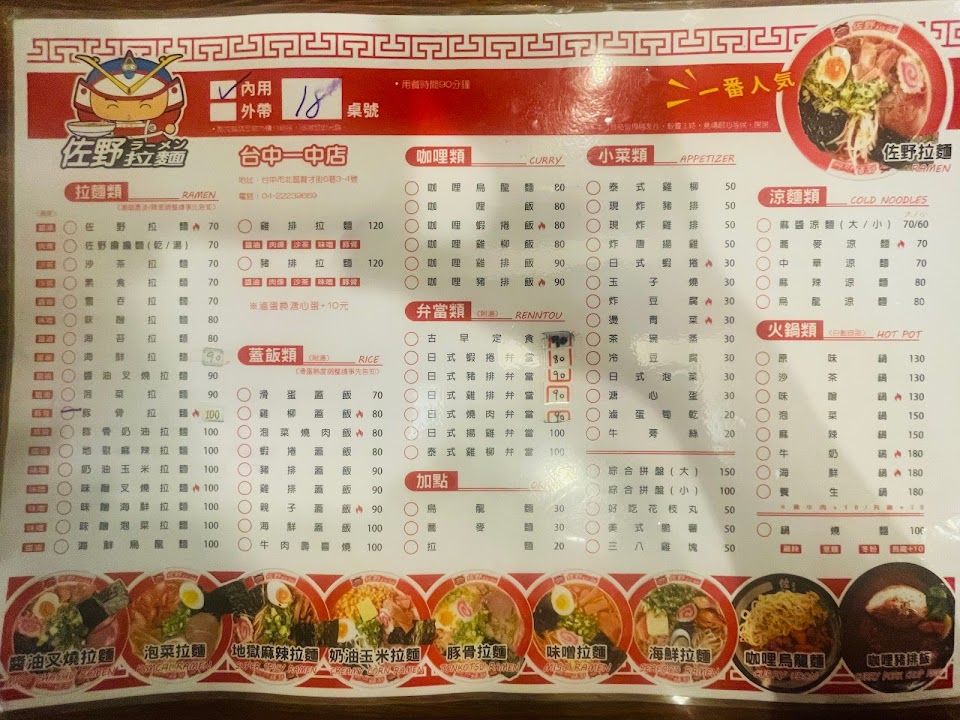 2024最新在地推薦餐廳的菜單_佐野拉麵的菜單、圖片