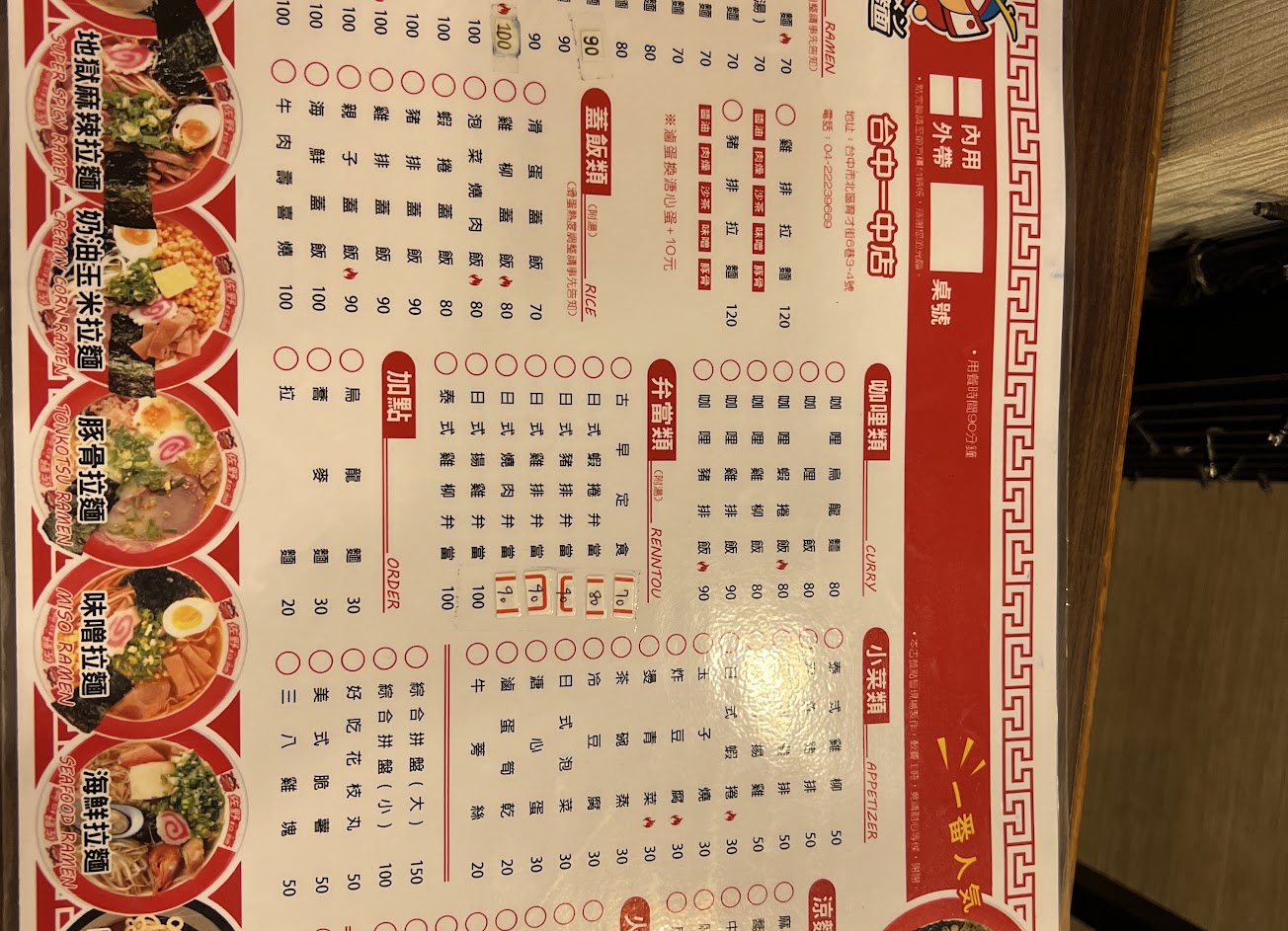 我是內用 建議要吃直接點裡面拉麵吃就好 外面的什麼台式小館就不用跟他消費了 點個沙茶鍋 吃的一肚子氣 跟老闆建議外面的遲早搞垮你這間