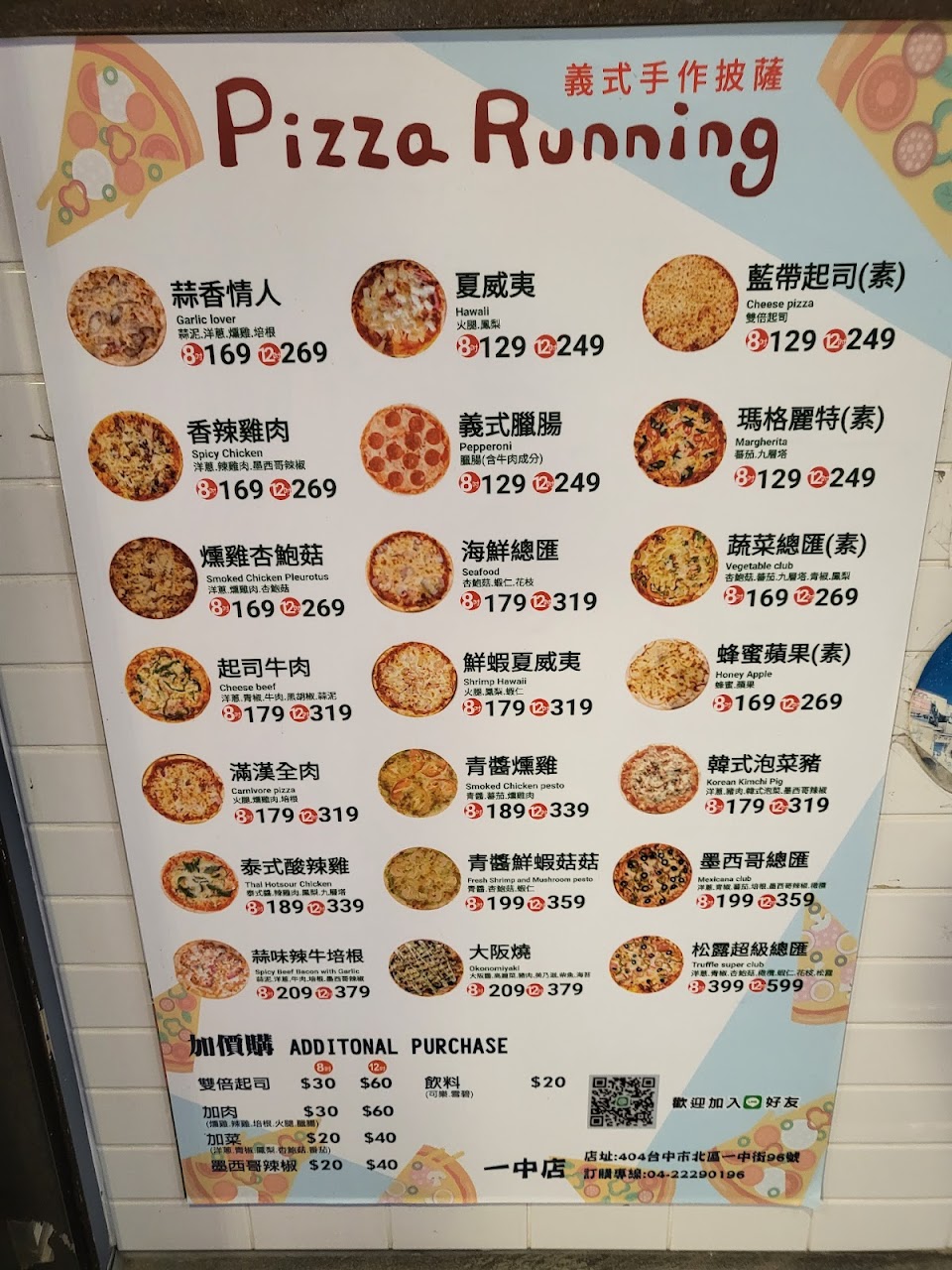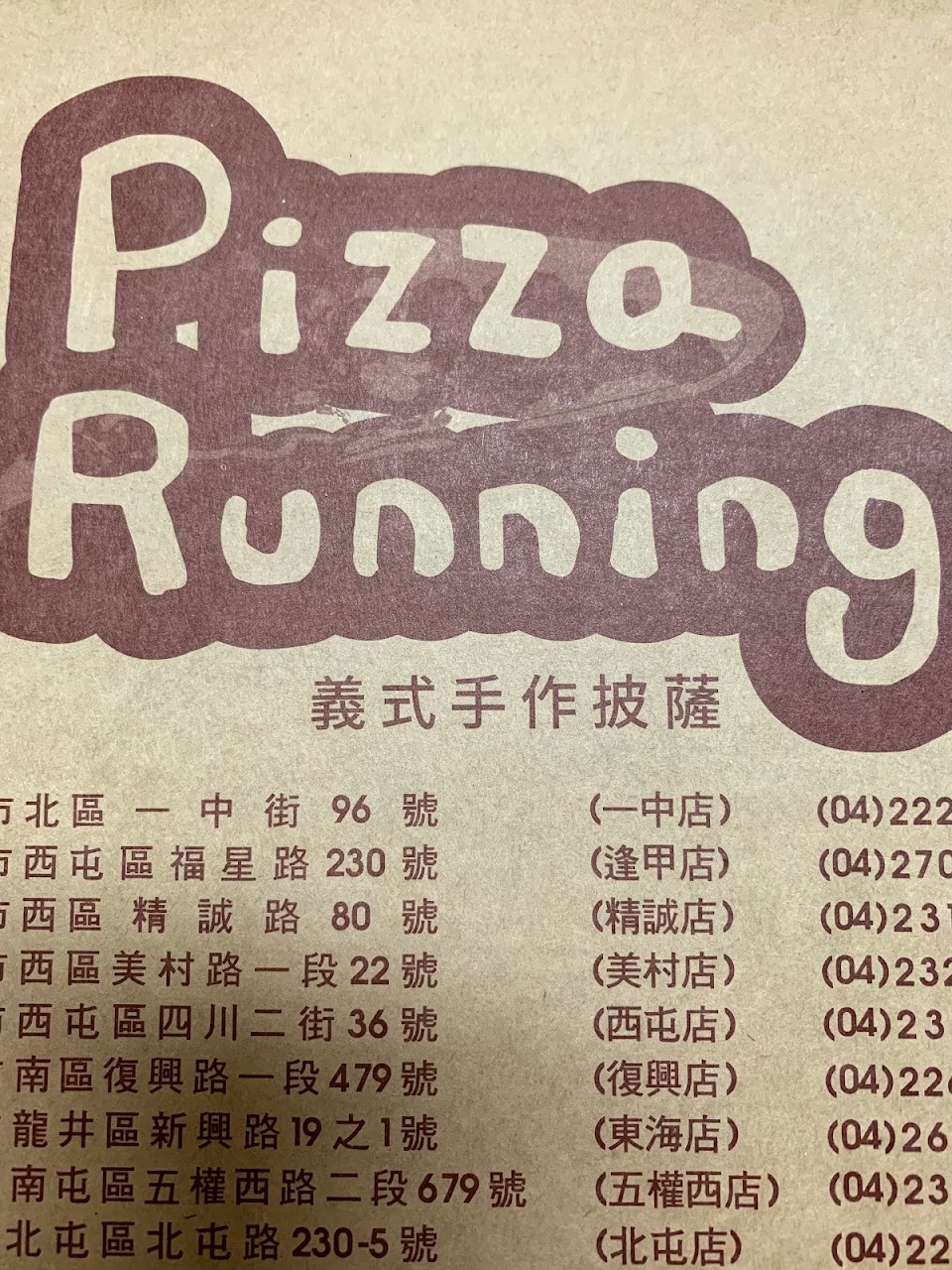 Pizza Running相較於大型連鎖pizza店便宜許多, 口味不但有自己的特色, 還蠻好吃的! 以後會想再試試其他口味呢!!