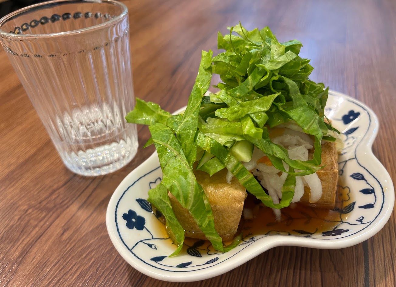 炸春捲內餡是滿滿綿密芋頭,炸春捲涼拌米線NTD140 非常划算,酸甜醬汁調味恰到好處,夏天吃清爽開胃。炸豆腐小份有三塊NTD40也很超值,會再回訪。
