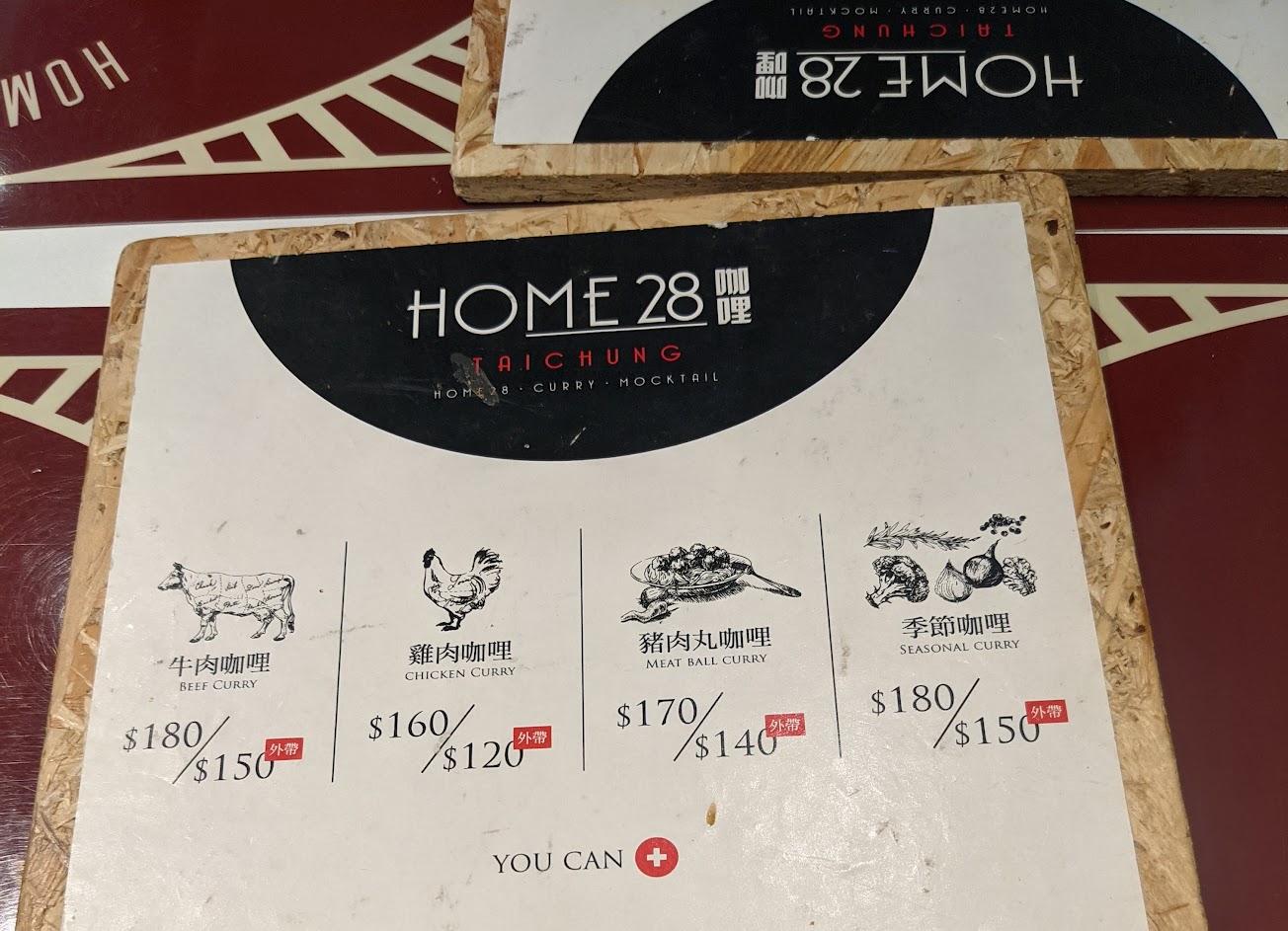 地點位於西屯區的國小斜對面,裝潢溫馨,店裡的哥哥熱情,讓人感到像到朋友家作客!除了態度親切,咖哩飯可以選擇的配料也非常多元,包含了牛肉、雞肉、豬肉丸子,還可以加購蔬食(初一十五)、問問店員(?)…等有創意的餐點名稱。辣度都可以額外再更改成小辣、中辣、大辣。這次我們點的餐點分別是牛肉咖哩飯以及豬肉丸子咖哩飯,飲品選擇Mocktail的黑醋栗檸檬,以及蔓越莓果汁。店裡的哥哥還不斷關心客人有沒有吃飽,也提醒我們,飯和醬料都可以再加,讓人感覺被照顧的好窩心!希望能常常來台中品嚐HOME 28的咖哩!