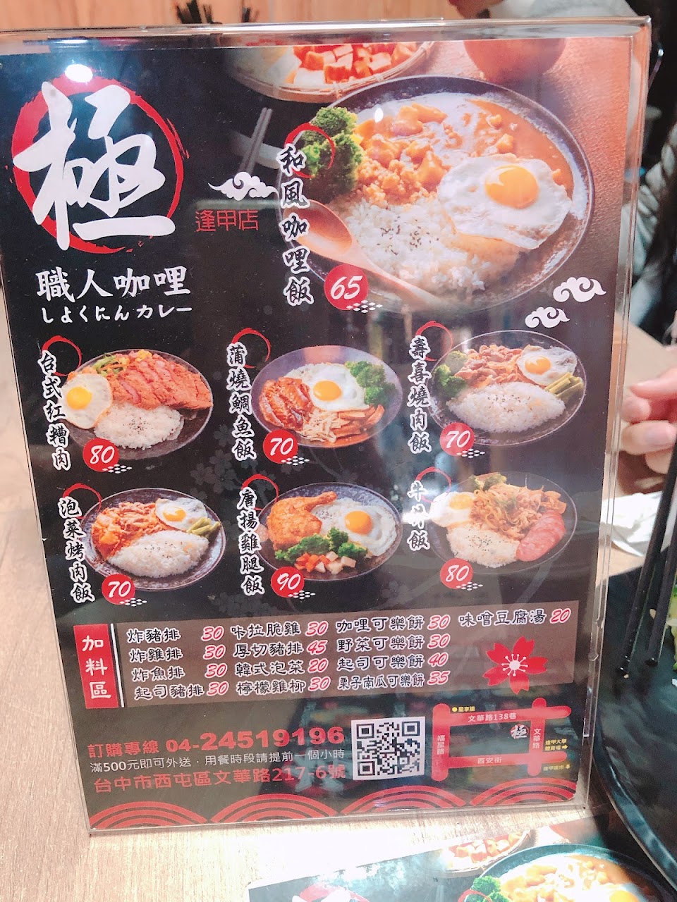 2024最新在地推薦餐廳的菜單_極 職人咖哩 (逢甲店)的菜單、圖片