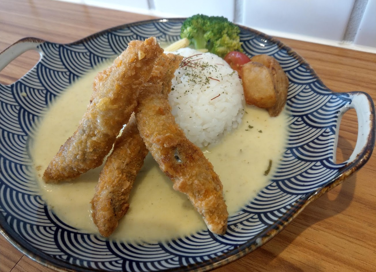 1. 綠咖哩+炸魚柳+起司+杏鮑菇$249-魚柳超小?一開始還在找主菜在哪,但是綠咖哩很好吃,可以省略缺點的程度,下次點牛肉!