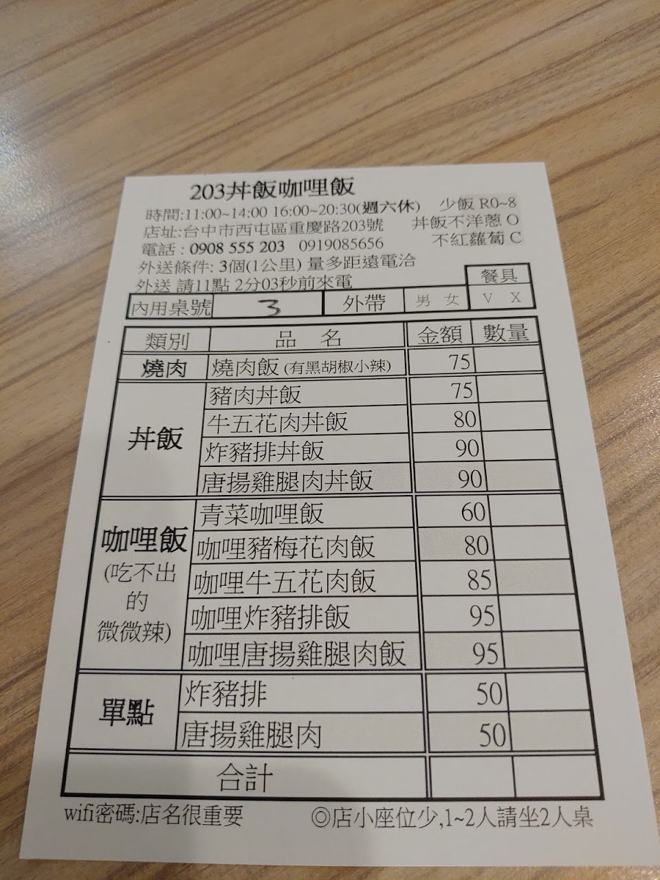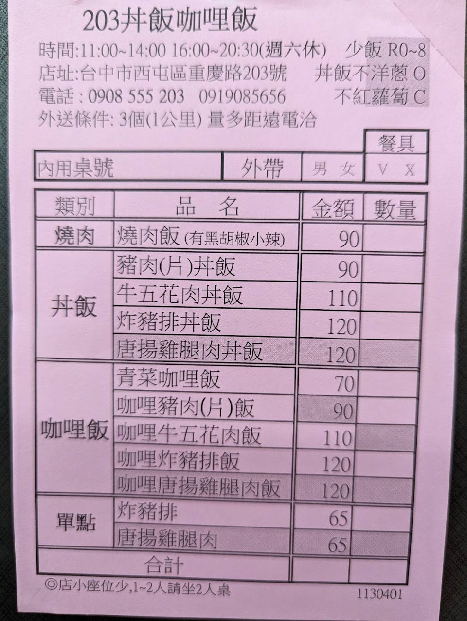 2024最新在地推薦餐廳的菜單_203丼飯咖哩飯的菜單、圖片