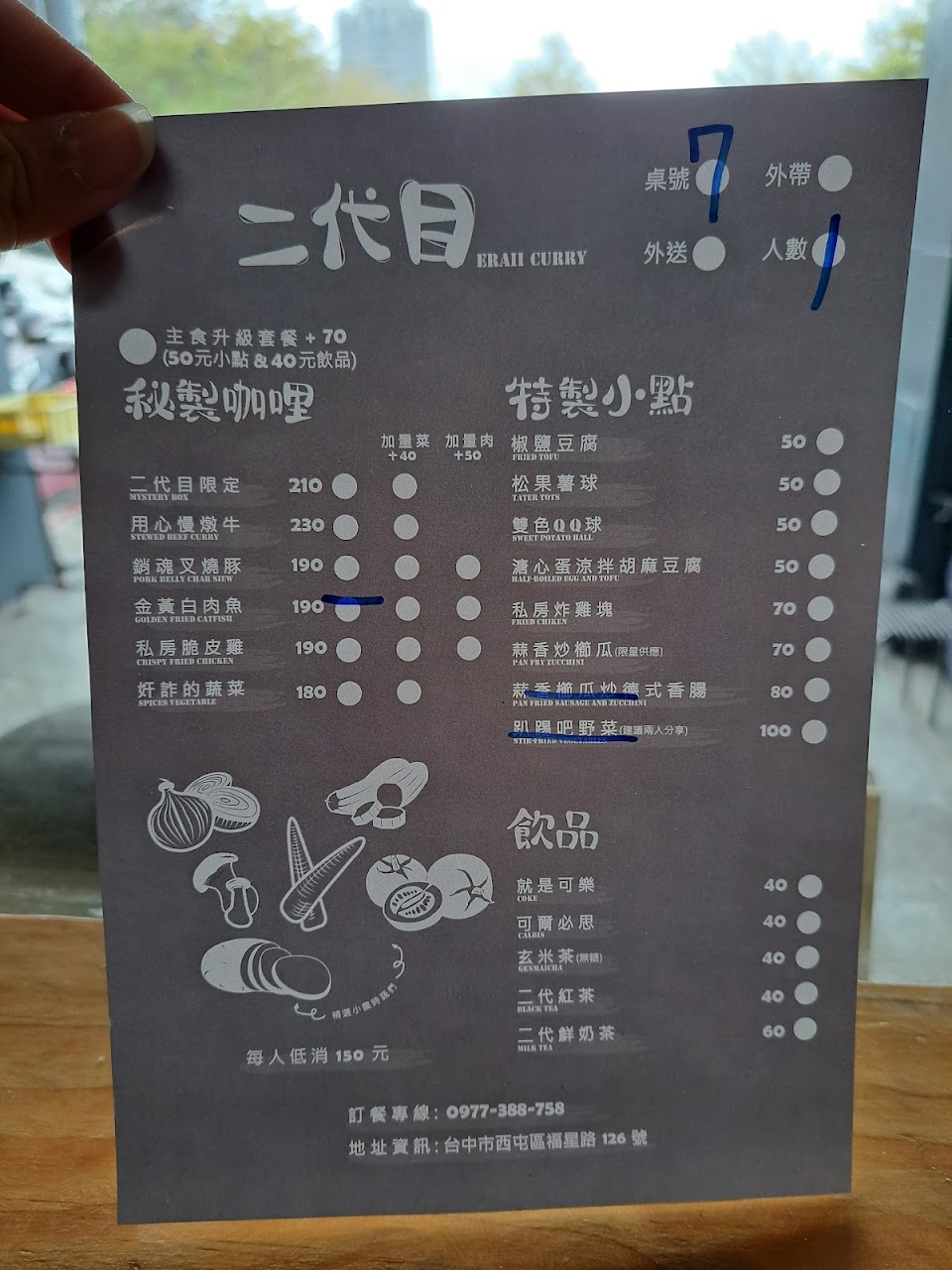 【?】二代目限定咖喱有限量,可以事先電聯詢問;出示學生證有享9折優惠?;?可以免費加1份醬1份飯