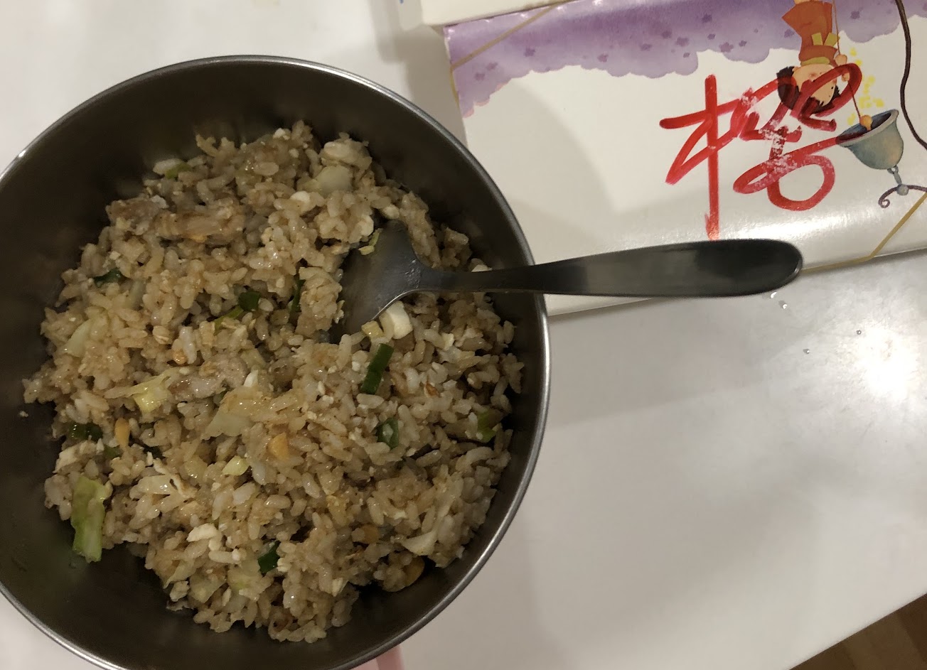 廣東炒飯味道太可怕了。大雜燴,不知道裡面放什麼有個很濃郁的騷味,讓我想起發霉的櫥櫃味。吃了兩口真的不行了……丟掉