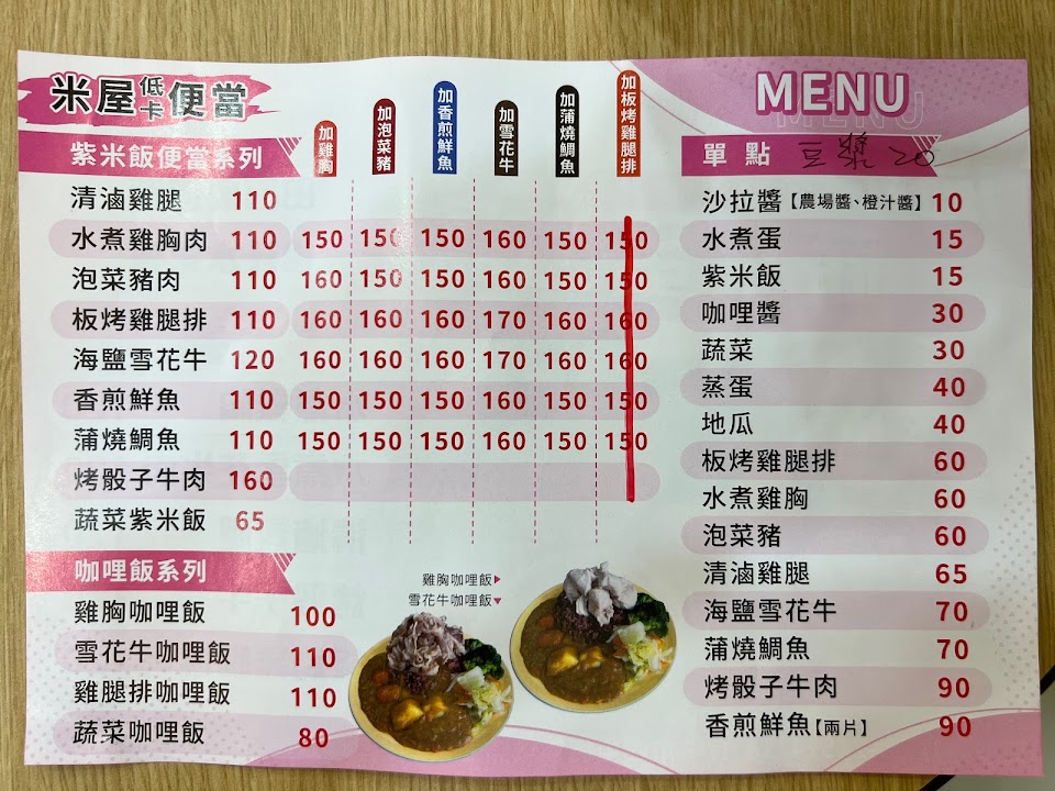 2024最新在地推薦餐廳的菜單_米屋低卡“便當”.溫沙拉.咖哩.健康餐的菜單、圖片