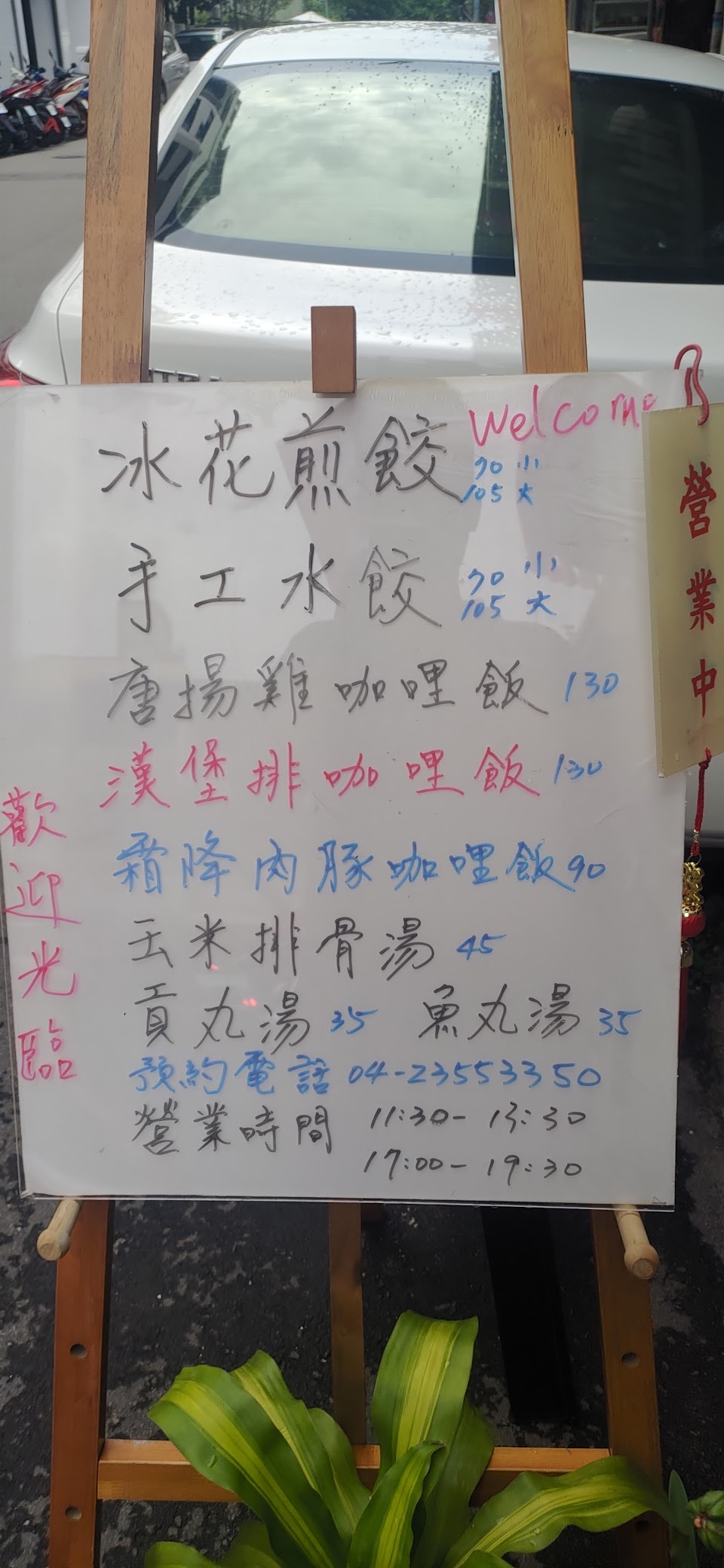 自製手工黑豬肉水餃,有高麗菜,韭菜,玉米口味。闆娘是台中榮民總醫院放射腫瘤部退休的放射師,絕對堅持品質,選擇更好的食材,物超所值。咖哩飯附一顆水煮蛋(本土畜牧場雞蛋,吃得安心)cp值高。