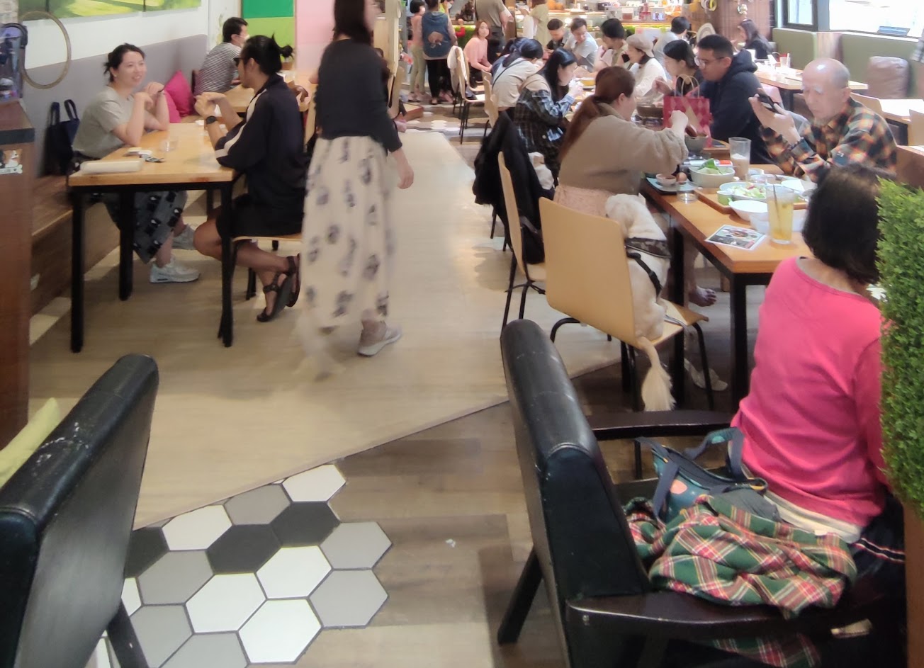 用餐空間非常的小,4大1小給一張4人桌,小孩擠在中間,吃飯手都不知道要擺哪裡。