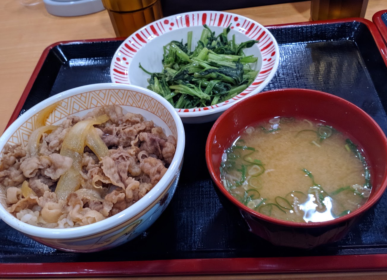 牛丼好吃但醬汁稍少;套餐的青菜及味噌湯都普通,純粹為了營養均衡而點的?
