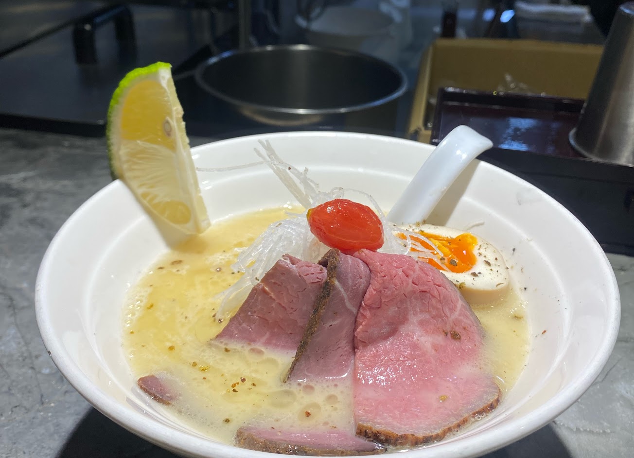 終究還是來了 之前看評價不怎麼好 就一直都沒來吃 還好今天有來 今天選台灣鹹 招牌牛骨白湯 $280 湯頭真的是不錯 有股奶油的香氣 牛肉好吃 麵有附上 梅漬番茄跟檸檬提供轉味解膩的效果 其中梅漬番茄更是畫龍點睛 牛筋土手燒 $100 好吃是好吃 但太甜了 跟想像中的味道不太一樣 酸甜的味道其實不錯 牛筋也十分軟嫩 但個人覺得是真的太甜了 吃到一半還可以加點白飯(免費) 雖然說是加點免費的 但這個飯是真的硬 但配牛筋是不太行 丟到麵湯裡泡一下還可以 以上