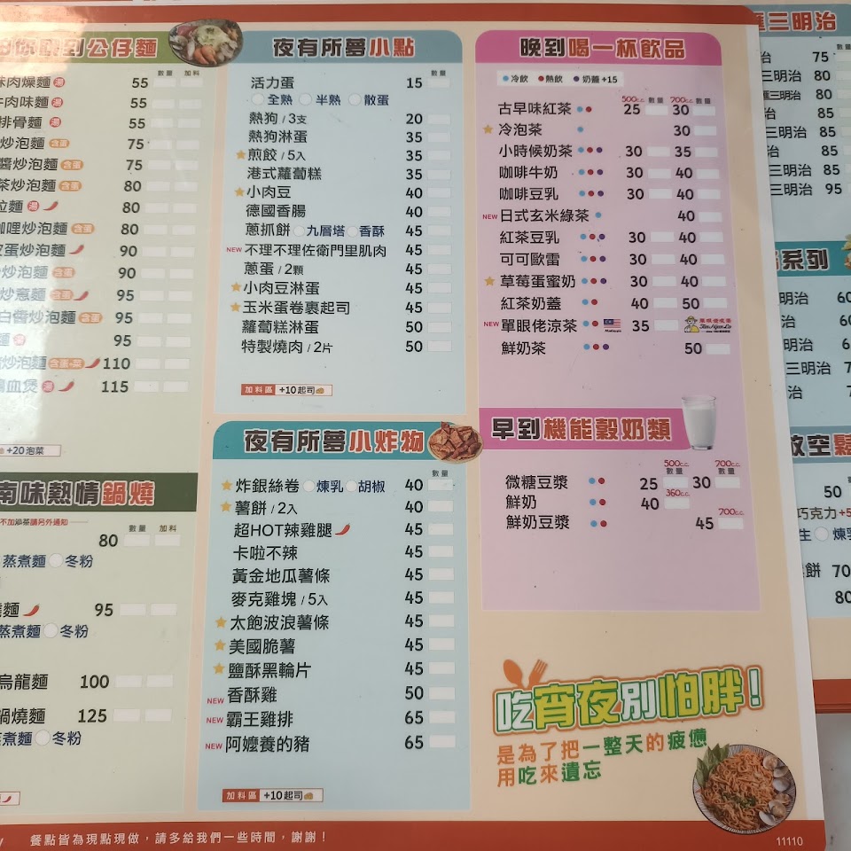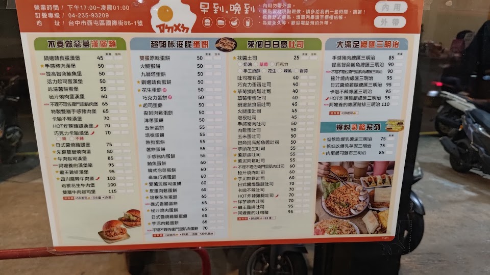 2024最新在地推薦餐廳的菜單_早到晚到-東海店 |台中宵夜|西屯宵夜|宵夜首選|人氣美食|炒泡麵|三明治|漢堡|咖喱飯|鍋燒麵|吐司厚片|炸物|小點心的菜單、圖片