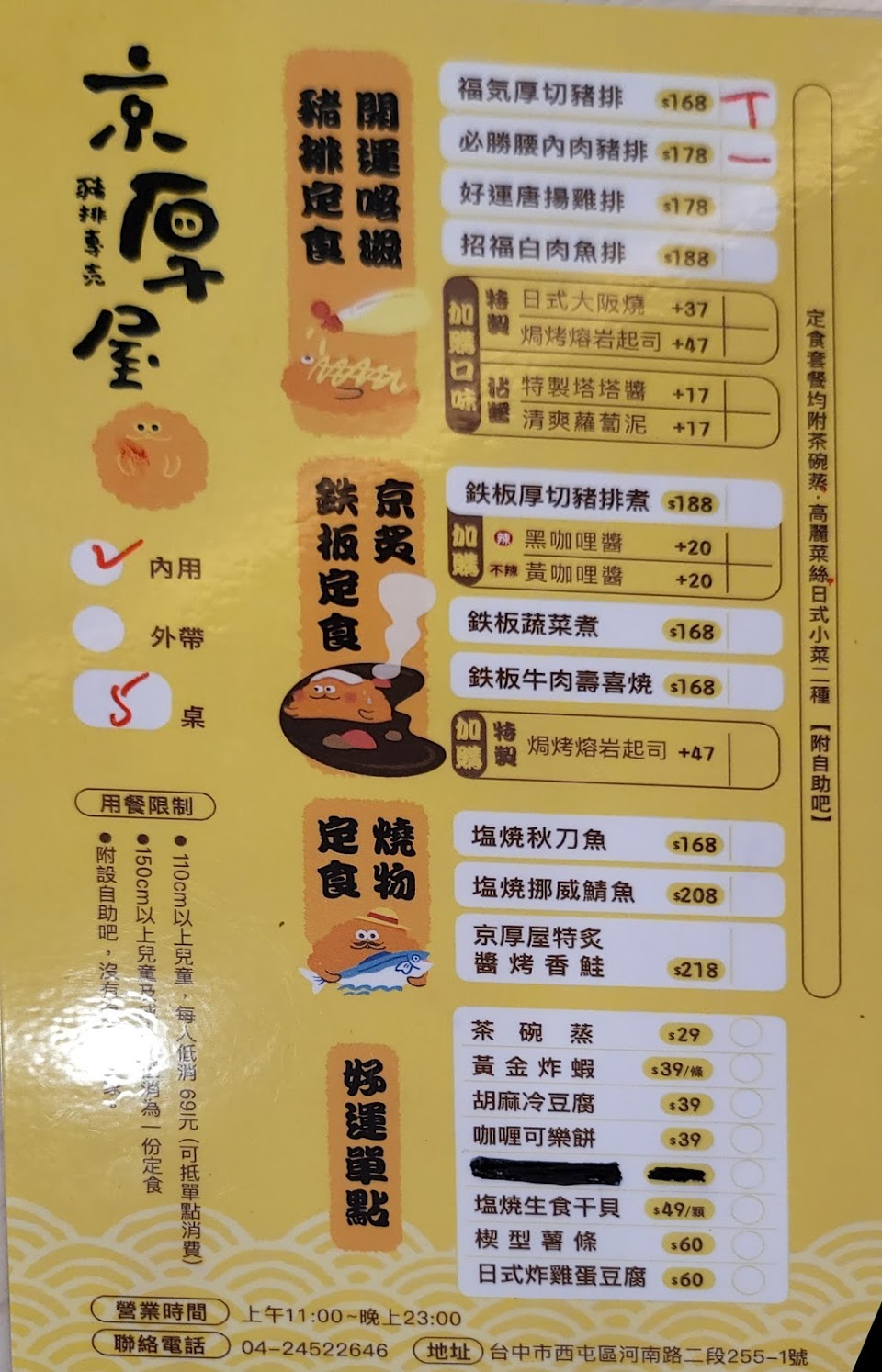 2024最新在地推薦餐廳的菜單_京厚屋 台中逢甲店的菜單、圖片