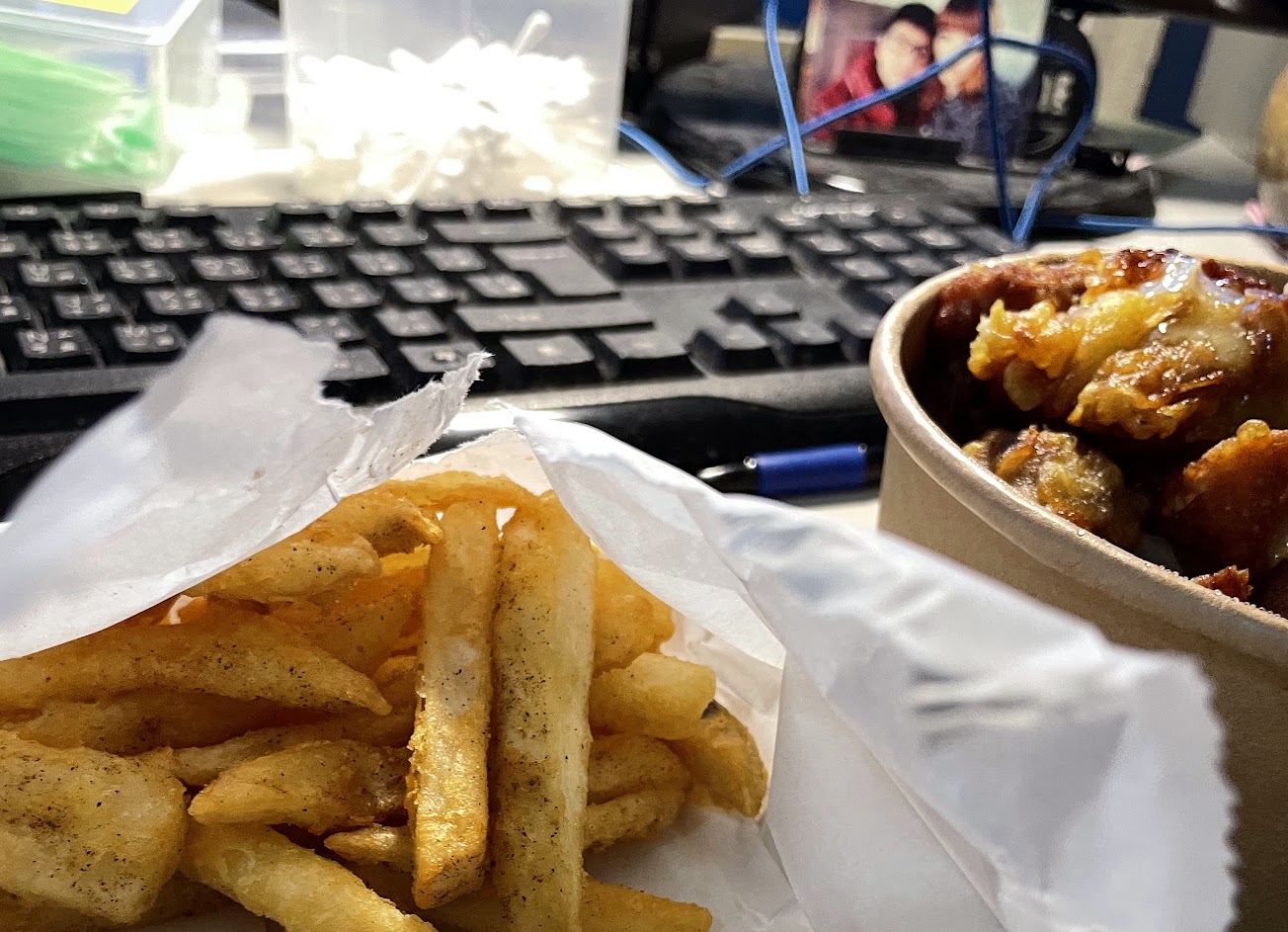 醬汁很下飯的前提下容易有白飯不夠配的狀況發生,整體份量很充足拿著吃手很酸真的很困擾,主菜底下藏著炸杏鮑菇而且竟然有比主菜好吃的問題?