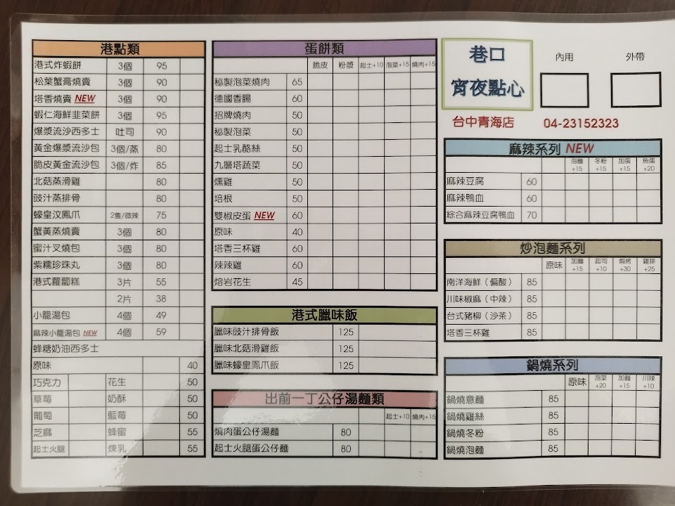 巷口宵夜點心-台中青海店(內用至02:30/內用最後加點01:45)