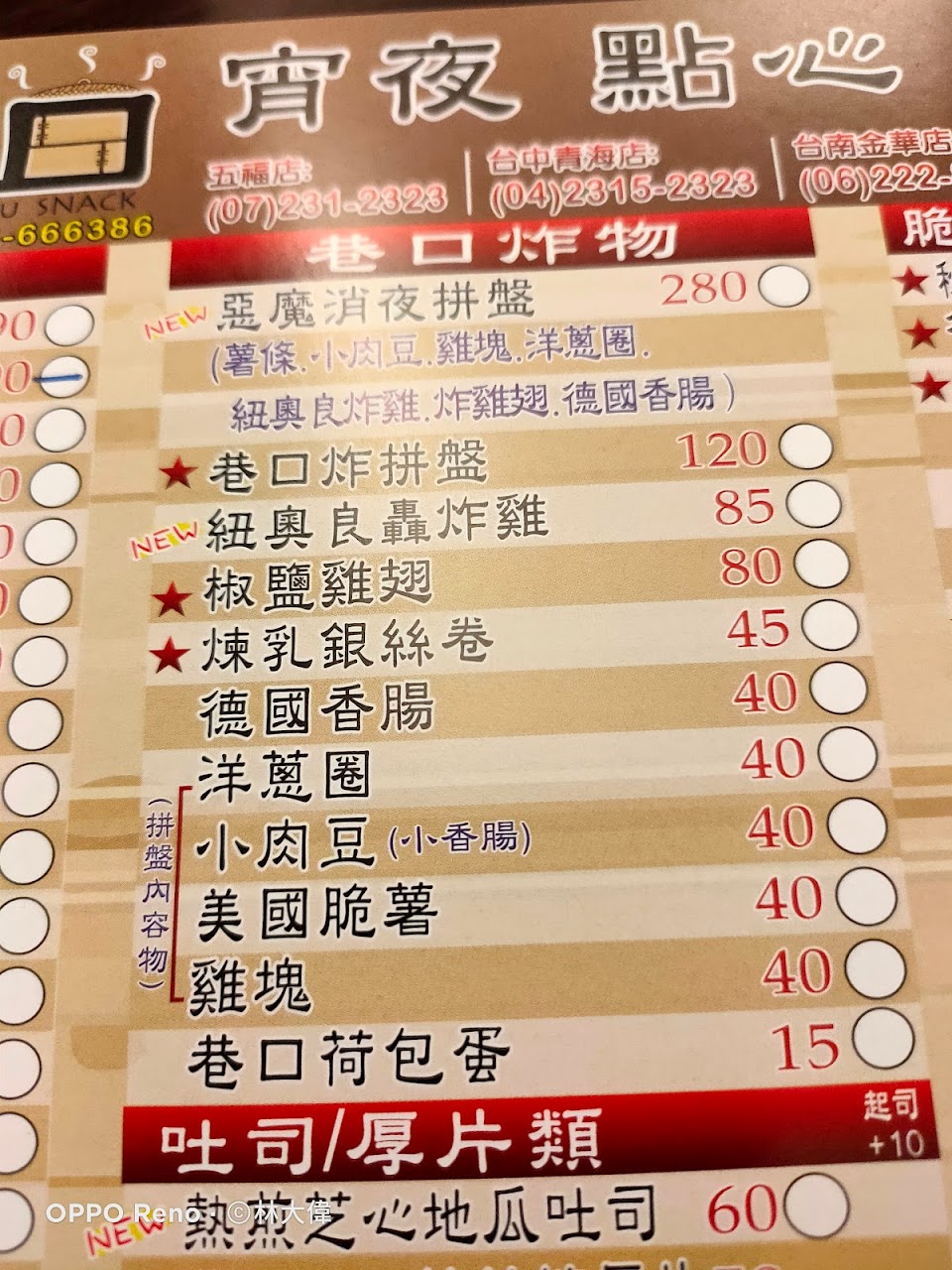 2024最新在地推薦餐廳的菜單_巷口宵夜點心-台中青海店(內用至02:30/內用最後加點01:45)的菜單、圖片