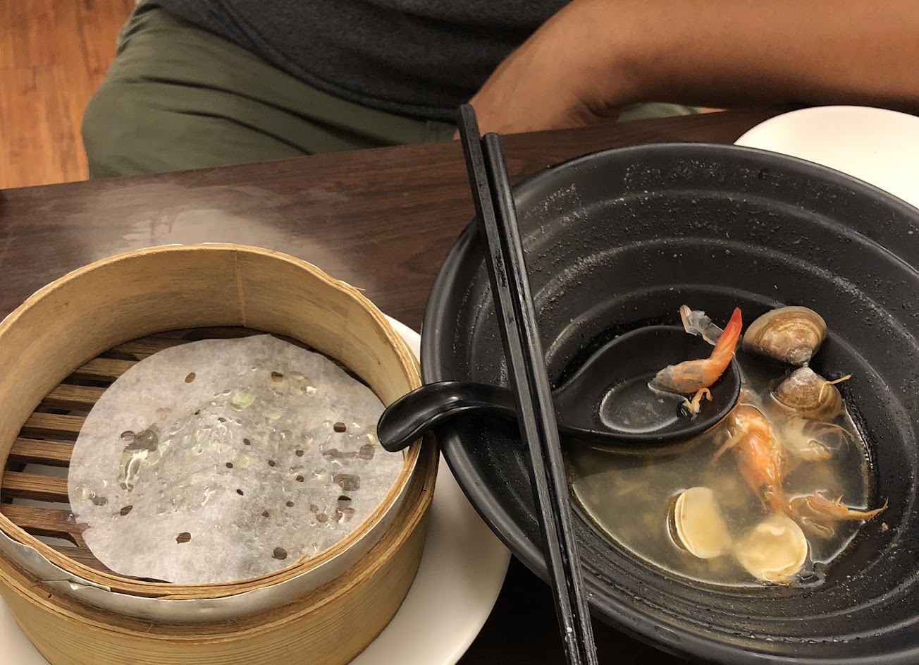 真的不好入口,但還那麼多人來吃⋯太不可思義了,宵夜時間幾乎是學生客群為主,食材部分很普通,燒賣像超商拿出來加熱的,腐皮蝦捲是便當的配菜那種,這是蝦捲吧⋯⋯南洋海鮮炒泡麵很詭異的調味,死鹹鹽加奇怪的檸檬汁,造就出吃一口就讓人有飽足感的神奇效果,為了強調有南洋風,在麵上面給我一片檸檬,當生命裡給我這檸檬,我寧願重生,但還是謝謝這家店讓我對人生有另一種體悟,生活中再多的不如意,在這些菜餚面前,都雲淡風清了。