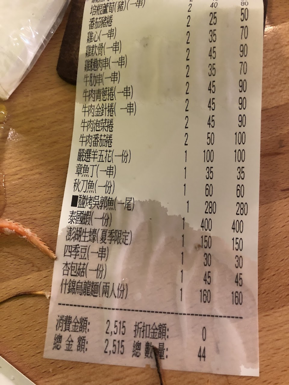 串燒好吃,但送餐人員滿嘴檳榔味。