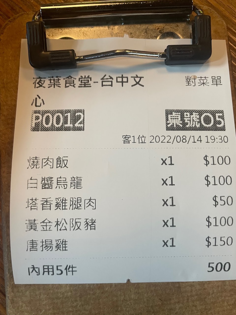 餐點:5