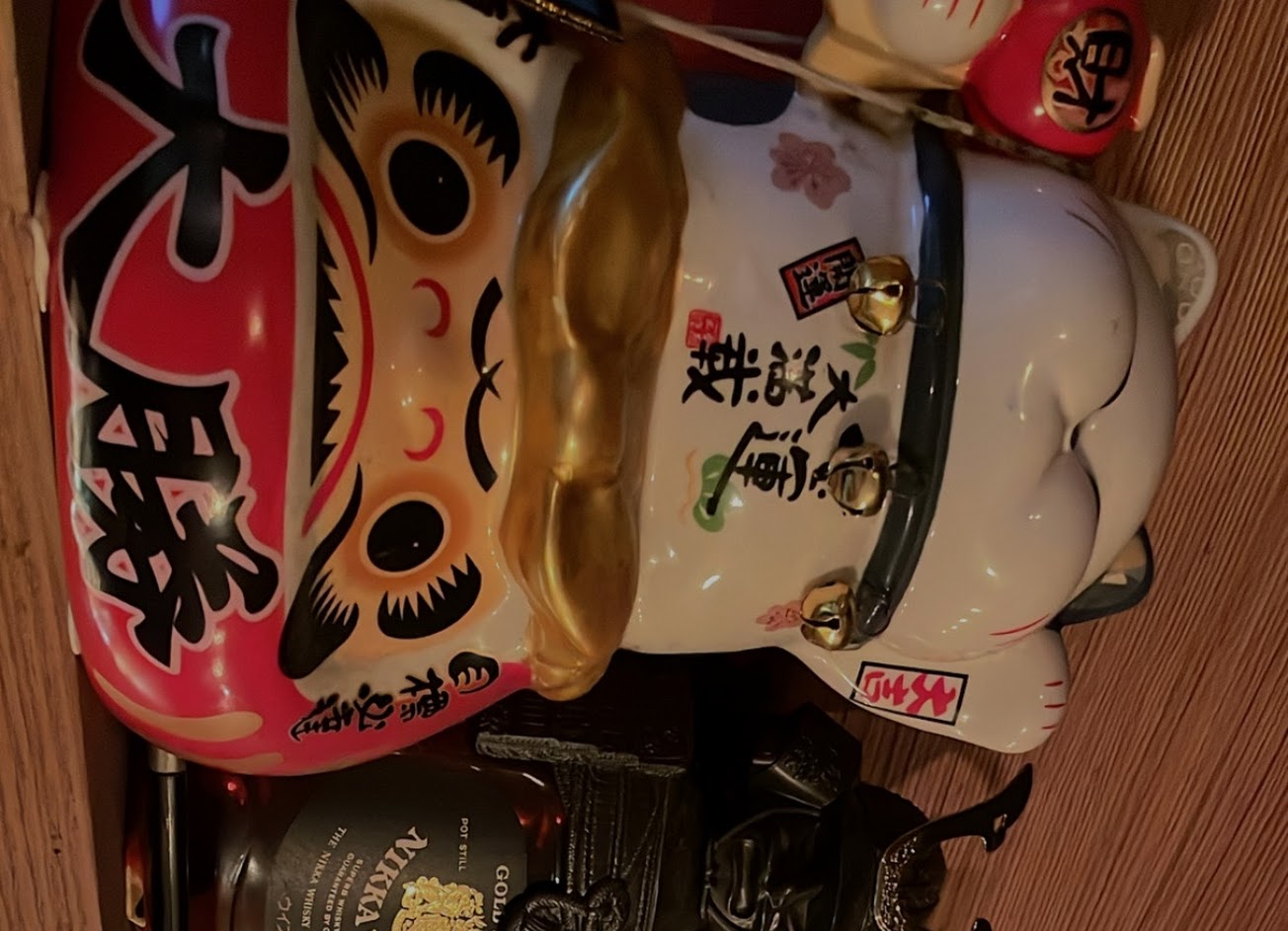整體裝潢使用較暗的木頭,燈光也是暖色調為主,很有日式居酒屋的風格,吧台的頂端層架也擺了許多酒瓶以及收藏品,餐具、碗盤非常有質感,不僅美觀還非常搭配店家整體的風格。