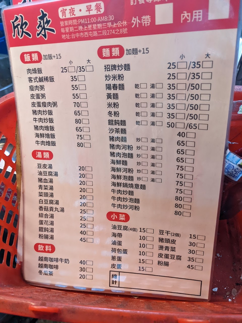 2024最新在地推薦餐廳的菜單_逢甲夜市欣來宵夜早餐店的菜單、圖片