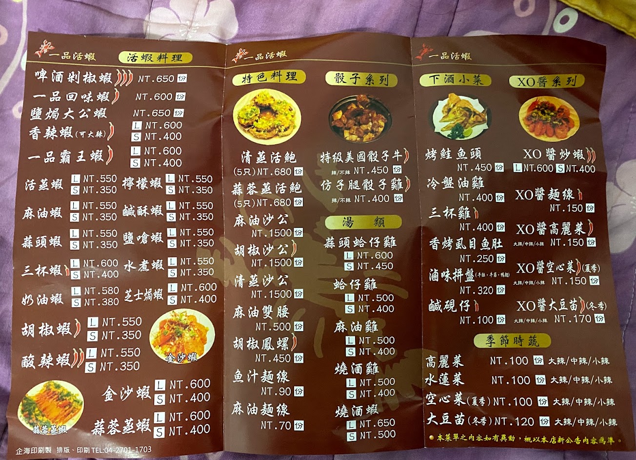 吃過不止一間活蝦料理 這次在台中一品活蝦用餐體驗真的特好 服務跟料理都讓我很滿意,大推!!