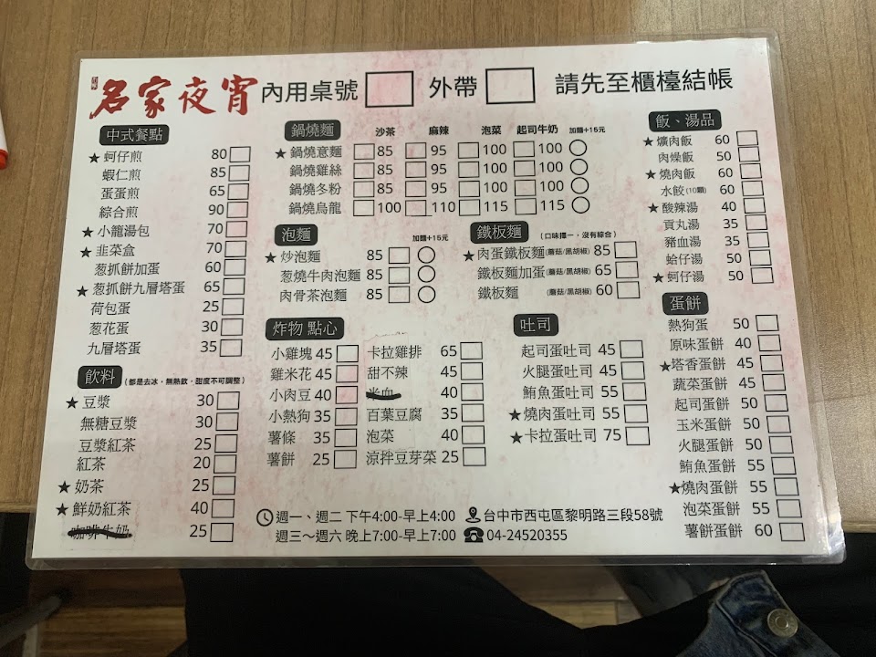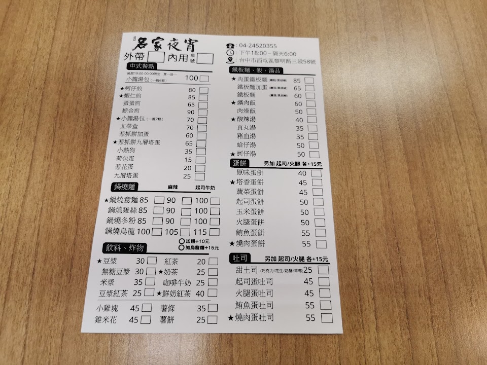 2024最新在地推薦餐廳的菜單_名家夜宵的菜單、圖片