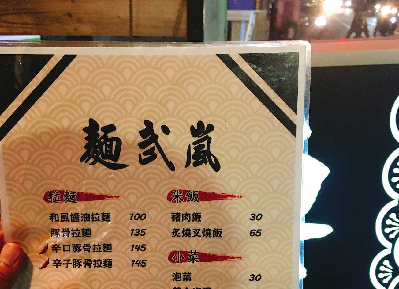 麺武嵐的湯頭真的是不錯,而且真的是大骨熬成的,有一次我看到他們在丟垃圾就是一包一包的大骨,以他的價位來講,真的是好吃又便宜,唯一的小缺點就是要排很久,哈哈,不過真的值得啦!