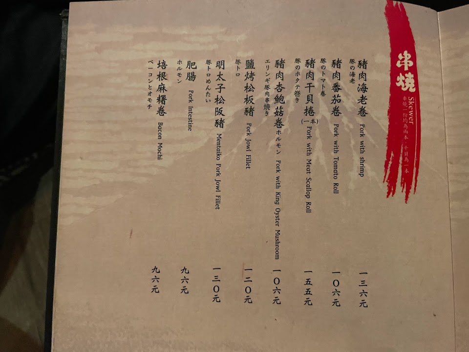 菜單價格高每人低消400,餐點的份量都很少,兩隻非常小的明太子雞翅$180真的有點誇張,還有鹽烤松阪豬非常的油膩,吃到滿嘴油,整杯茶喝完還是覺得有點噁心,3位去用餐回家後3位都拉肚子,不知道是食材不新鮮還是真的太油了,撇開價錢不談,食物真的也不算好吃。結論是花了將近2千用餐非常不值,沒吃飽反而還拉了肚子,體驗真的非常差。