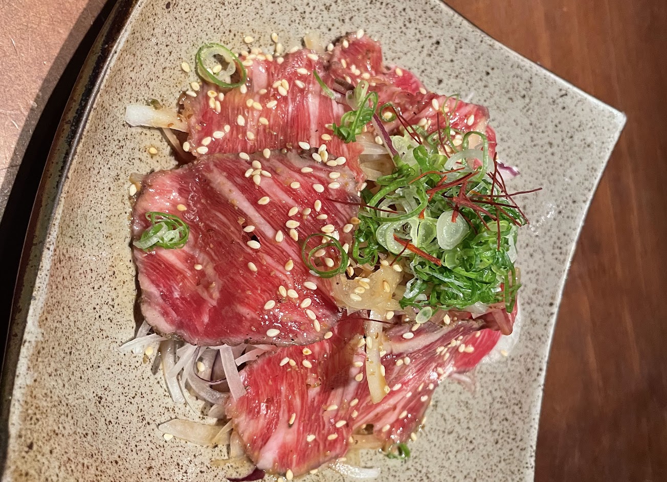 2022/5/4 日本山藥細麵:沒有麵,只是型態像麵,滿滿山藥非常濃稠 生牛肉:因為切都很薄,還有調味過,原本怕怕的,但吃起來意外好吃 紫蘇番茄:清爽又開胃 豬肉海老捲:肉很香,裡面包蝦仁滑滑的,可惜不是新鮮的蝦 雞肉唐揚:個人不愛,麵衣跟肉之間軟軟的,感覺不是很熟 比目魚丼飯:不錯,加點哇沙米醬去腥更好吃 肥腸:已經烤到裡面的油脂化掉,外皮很酥,鹹香微甜,必點 鹽烤松阪豬:有點脆感,必點 牛肉串燒:吃下去有驚艷,肉質很嫩,絕對必點 帶骨牛小排:很潤咬不太斷,個人不愛 炭烤蒜頭燒鳥串:蒜頭烤到完全沒辣味,淡淡蒜香蠻好吃 燒烤加七味粉很對味,桌上有可以自行添加,其他餐點沒特別提到的,就是覺得普通。整體還不錯吃,但是價位偏貴,因為再大馬路上,停車位也比較難找,坐捷運很方便