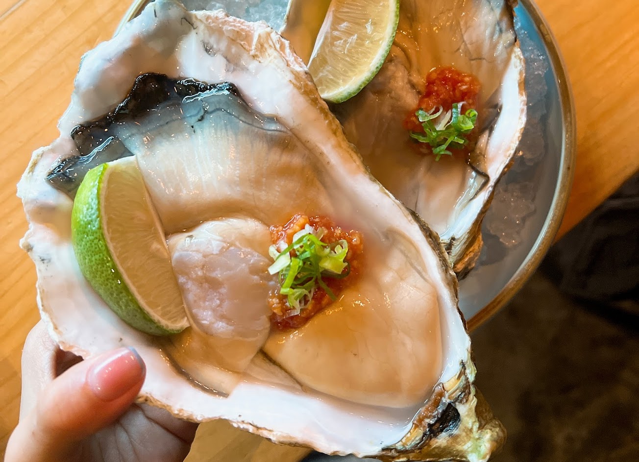 當初看廣告很多而且很多人推薦才來嚐鮮的,但當天點的兩道生食料理真的都超級不行,生牛肉吃起來口感沙沙的很像剛從冷凍庫拿出來沒多久,而且牛肉味超級淡不注意吃根本發現不了;柚香生蠔腥味超重,連那麼多醬汁都蓋不過去的的味道⋯⋯人生第一次吃到腥味那麼重的生蠔?