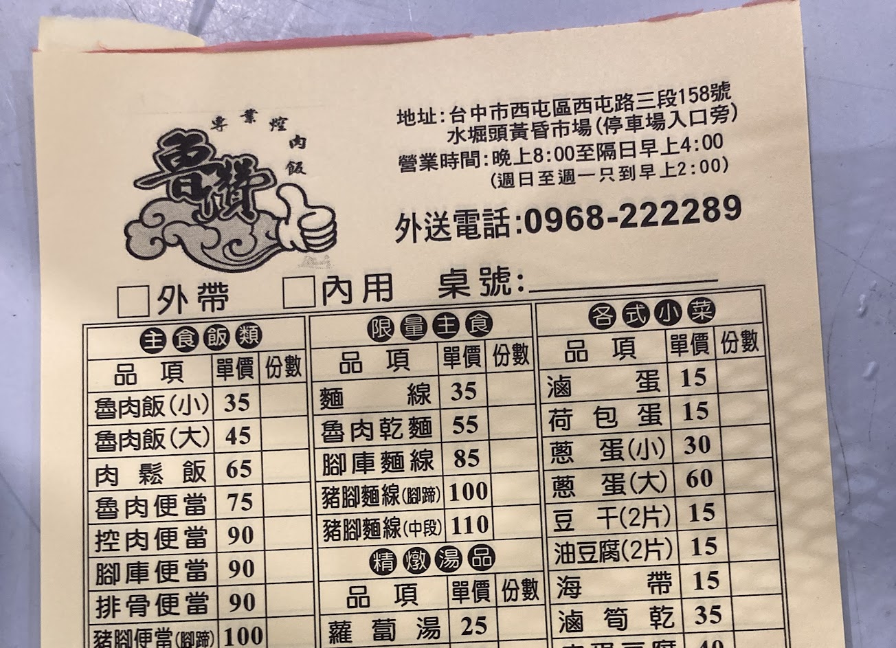 西屯區晚餐/宵夜的好選擇,雖然晚上八點後才開始營業,但每次經過都大排長龍,最推薦他的魯排飯和魯肉飯,口味剛好,很下飯。