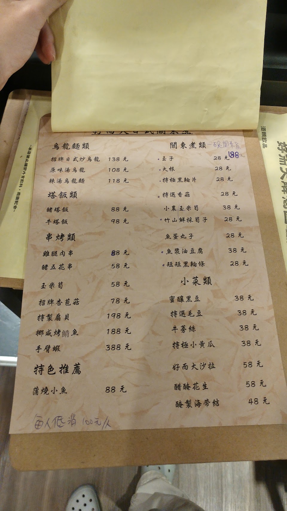 老闆娘待人親切,日式的居酒屋風格也格外讓人有種放鬆的感覺。也是上課到晚上9點吃宵夜的好去處,關東煮湯頭鮮甜,搭配白蘿蔔吃清爽又多汁。德式香腸的重口味也能和豬血的清淡口味一起做搭配。如果想搭配主食可以選擇滷肉飯,價格便宜又大碗,吃起來是偏甜的口味。