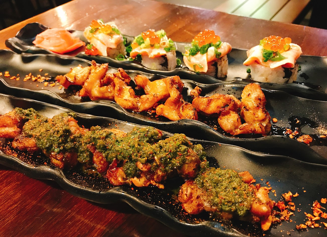8點來吃晚餐,點了鮭魚親子壽司/肥牛壽司/炸牡蠣/金蔥烤豬肉 壽司屬創意料理,鮭魚的較好吃 炸牡蠣好吃有水準 店內缺點是聚餐的人多,非常吵雜,講話要比較大聲朋友才聽的到 若以吃晚餐來看cp稍嫌不足,飯麵類的品項太少,只能吃炸的烤的 適合朋友聚會喝喝小酒又不嫌吵的客人