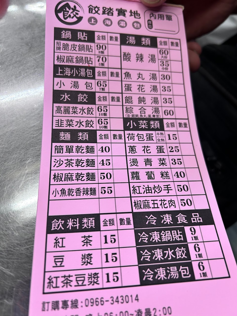 其實就是一個宵夜吃八方雲集的地方而已,鍋貼的確是大顆,皮多餡尚可,所以原味鍋貼一顆大概11.25元,椒麻的特貴,一顆要15元,其實都是一樣的東西,就是淋了椒麻醬所以每一顆變15元,的確是蠻坑的! 椒麻醬的味道其實非常不椒麻,用飲料比喻像是半糖的椒麻那種感覺,白話就是不專業的椒麻醬…..><" 湯包就不要點了,如果你有吃過傻師傅湯包就是一樣口味的東西,沒錯不要懷疑,就是那個冷凍湯包的味道,別浪費錢了。 我是真心覺得店名要改成腳踏實地逢甲冷凍湯包,吃了那麼多間手工湯包,但看到這間的湯包我真的不敢點,冷凍湯包我就去7-11買微波的就好了何必跑到逢甲….= ="(雖然說7-11的更難吃一點)。 我放的照片就是我點的餐點,麵、湯當然就沒點,畢竟那個就是每個人家裡路口就有賣的東西我就不點了。 蘿蔔糕早餐點也都是賣35,這裡賣40 紅茶就15,一樣!!!就跟你以前喝的10元但是現在15元的早餐紅茶一樣。 好啦!該講的講完啦,總結如下: 一次店!以後就不會特地再來了! 鍋貼對大家來說是平日午晚餐的東西,八方跟四海也是遍地開花,連鎖鍋貼店買兩顆5.5元等於這個 一顆11.25元,量差不多啦! 不要特地開車開了半個小時來這裡吃宵夜,你會帶著失望離去,但如果你住西屯附近的話這裡是個ok的地方,方便吃!! 講白話就是你不會特地神經到開半個小時去某個地方吃八方雲集吧,你家外面就有又何必開那麼遠,這間店就是這個道理,沒什麼!想特地採雷的建議看完大家的評論再考慮過來,我只是單純是個湯包、餃類控,所以我一定會踩雷給大家評論~ 服務 內用 餐點類型 其他 平均每人消費金額 $1-200