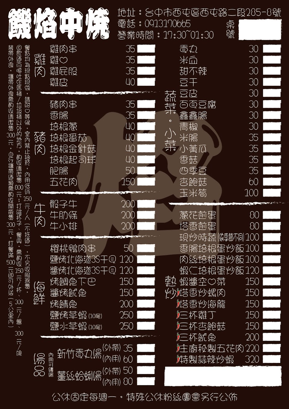 2024最新在地推薦餐廳的菜單_饑焰中燒 串烤店的菜單、圖片