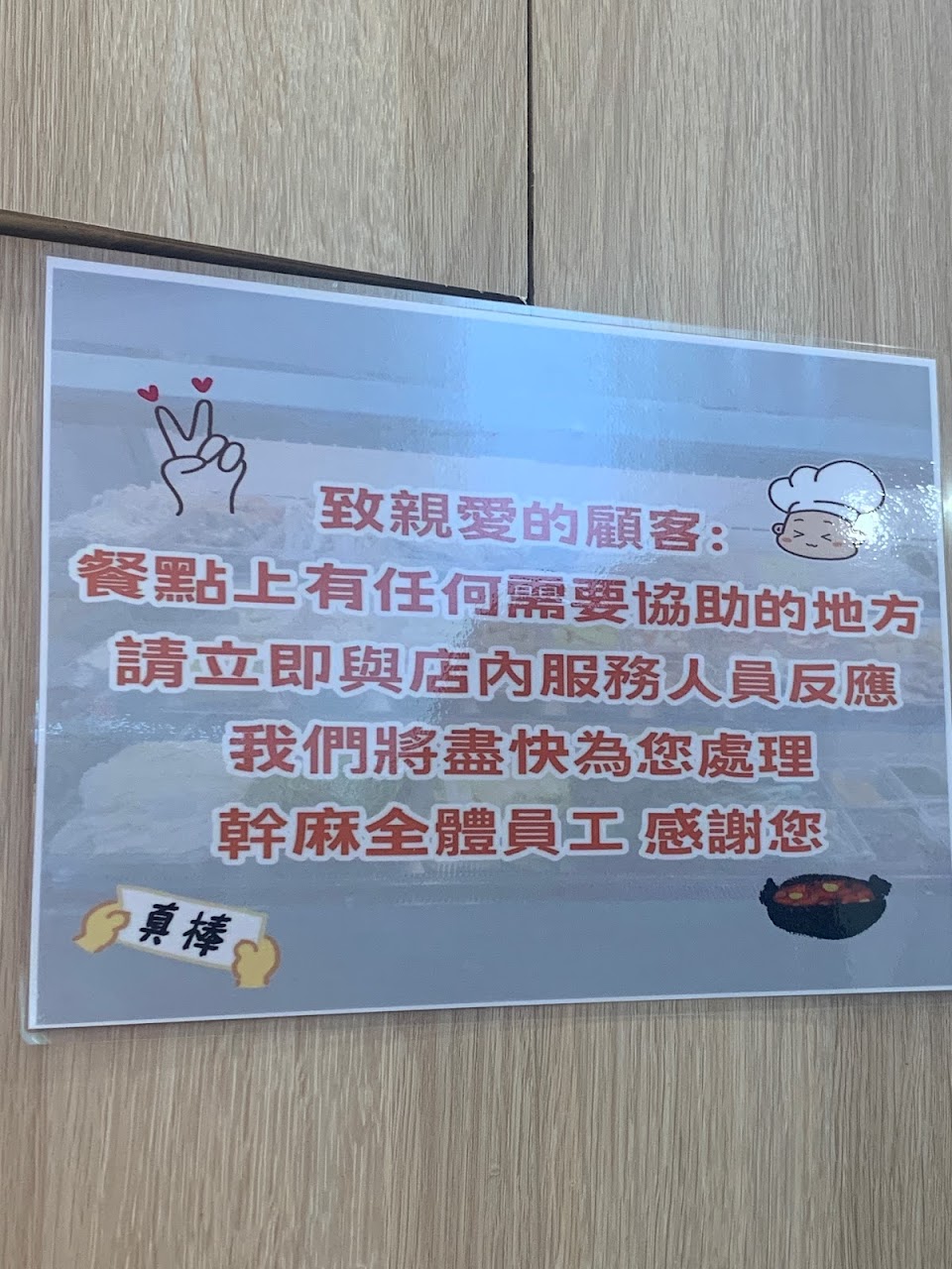 服務真的很爛,我點一份麻辣鴨血一份蝦一點蔬菜【共三百多元】結果蝦沒有給我,我打電話去反應,接電話的A先生說下次補~問題是我沒有經常去台中,A先生又繼續說不好意思?完全沒有要退款或進一步處理的意思.我說好那我只能去給你差評了,沒想到A先生竟然說“好!可以“~這是店大欺客嗎?不相信漏放蝦,可以問我什麼時間去,調監視器啊!怎麼可以想要這樣算了呢?